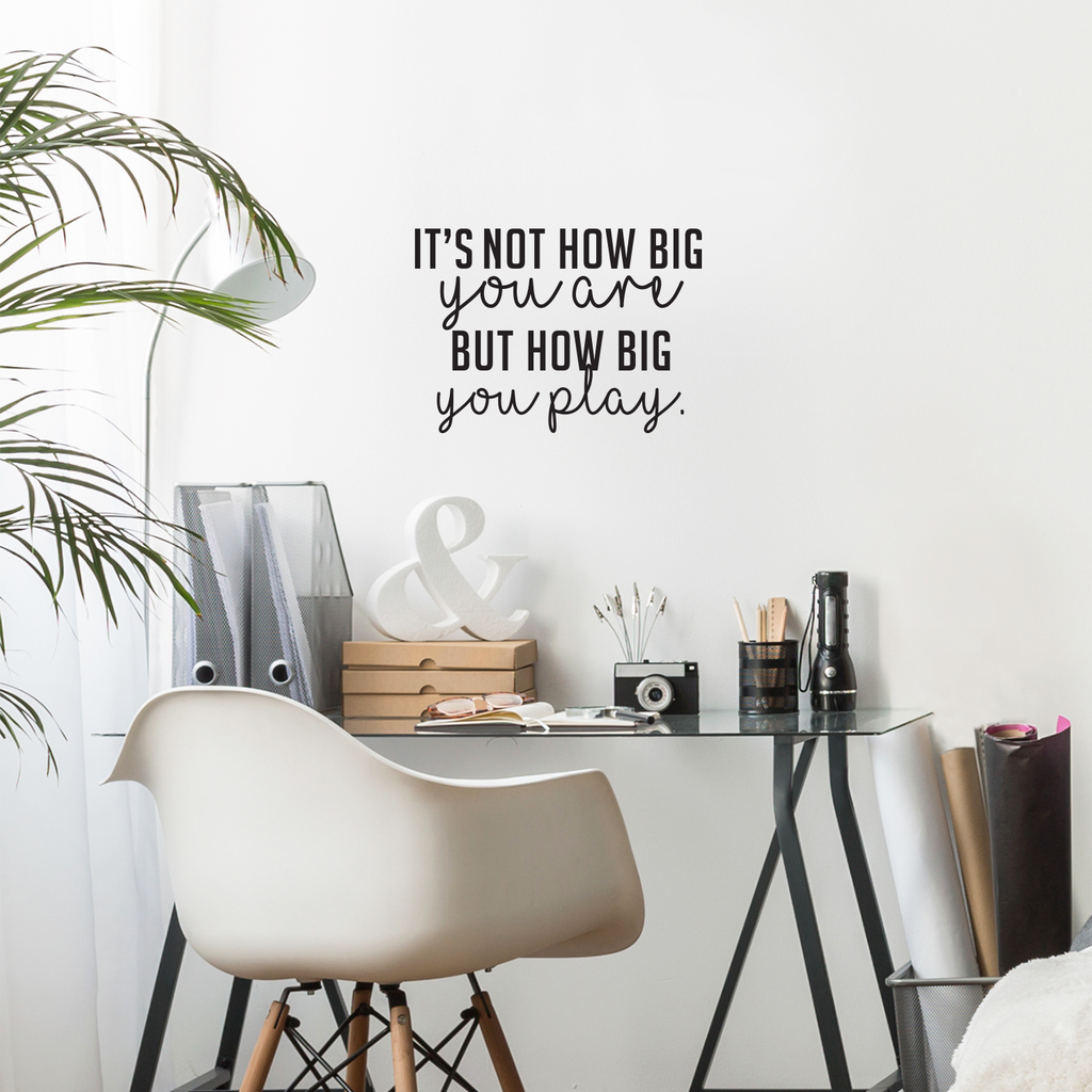 This awesome "It's Not How Big You Are But How Big You Play" wall art decal is the perfect touch for your home or workplace. Use it for your bedroom; living room; office or anywhere you want to bring some extra decoration. It's a vinyl sticker that is easy to put on almost any smooth and dry surface. Our modern designs don't just brighten up the room; but brighten up the day. Using top of the line vinyl across all of our production allows us to be the leaders in quality and design.