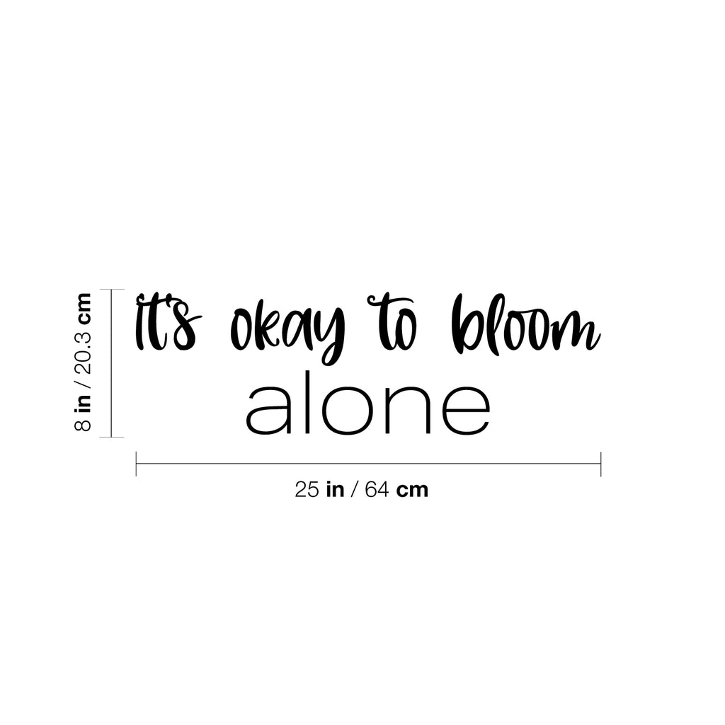 This awesome decal quote "It's Okay To Bloom Alone"; is the perfect touch for your home. Use it for your kids room; living room or anywhere you want to bring some extra decoration. It's a vinyl sticker that is easy to put on any smooth and dry surface. Our modern designs don't just brighten up the room; but brighten up the day. Using top of the line vinyl across all of our production allows us to be the leaders in quality and design.