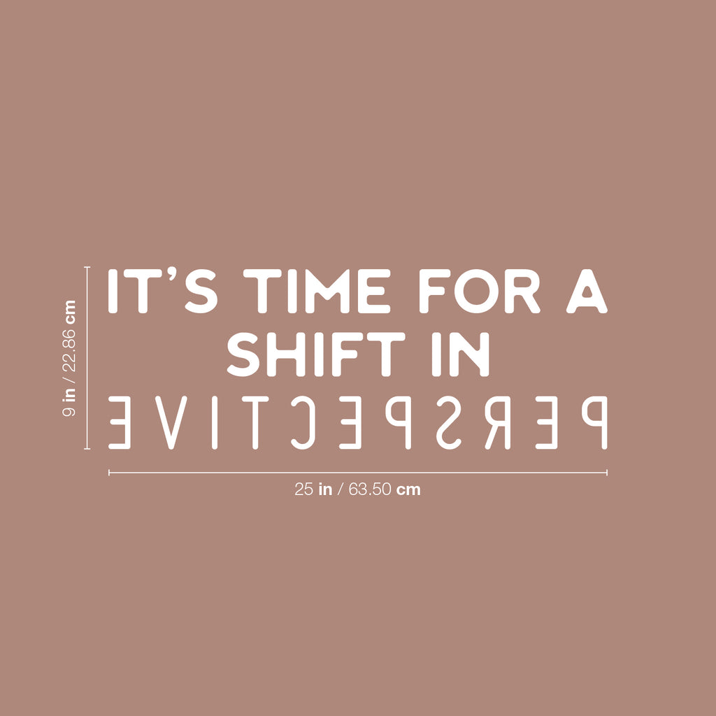 This awesome motivational decal quote "It's Time For A Shift In Perspective"; is the perfect touch for your home or school. Use it for your living room; playroom; kids room or anywhere you want to bring some extra cute decoration. It's a vinyl sticker that is easy to put on any smooth and dry surface. Our modern designs don't just brighten up the room; but brighten up the day. Using top of the line vinyl across all of our production allows us to be the leaders in quality and design.