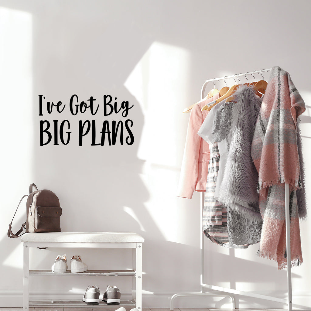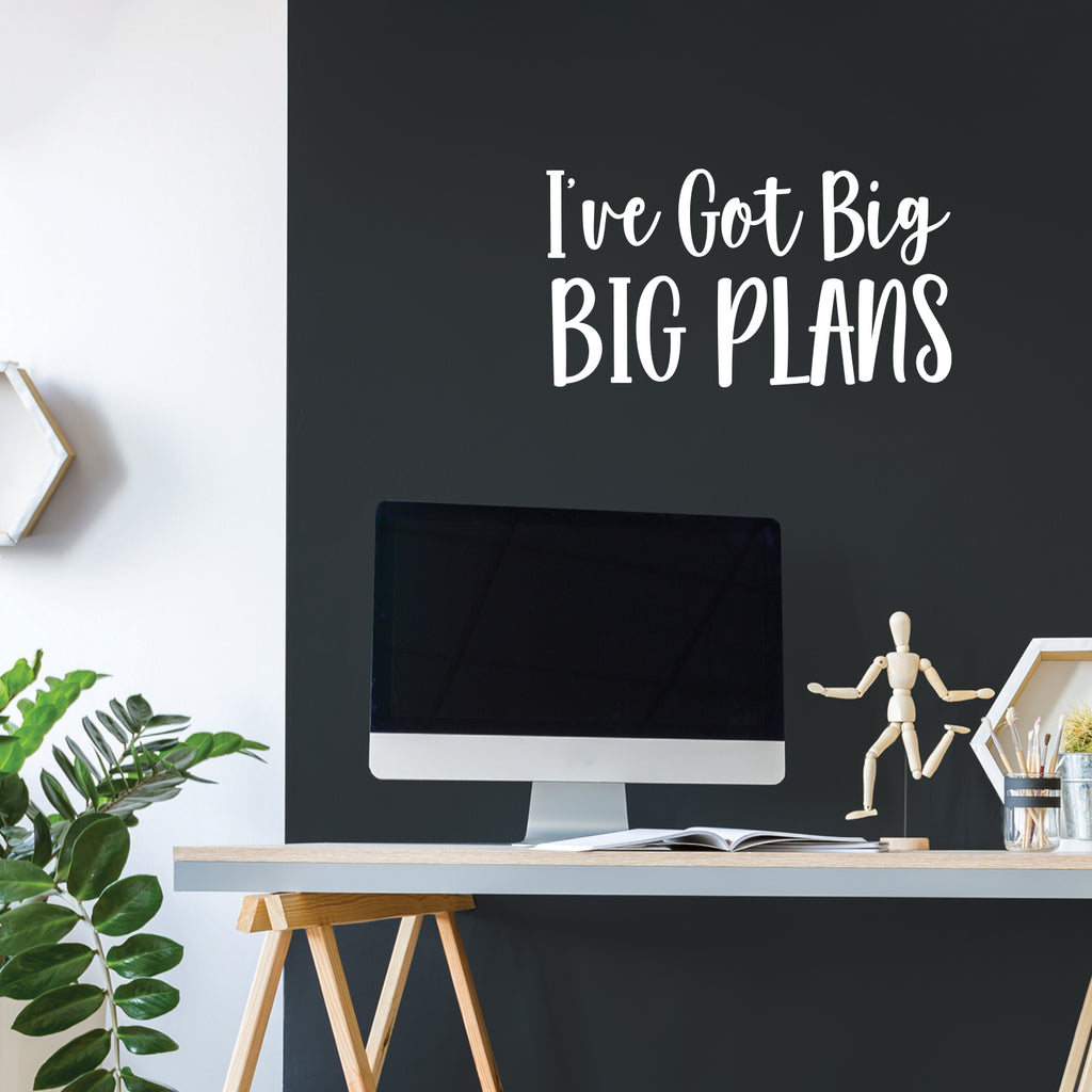 This awesome positive decal quote "I've Got Big Big Plans"; is the perfect touch for your home or office. Use it for your living room; school; coffee shop or anywhere you want to bring some extra motivational decoration. It's a vinyl sticker that is easy to put on any smooth and dry surface. Our modern designs don't just brighten up the room; but brighten up the day. Using top of the line vinyl across all of our production allows us to be the leaders in quality and design.