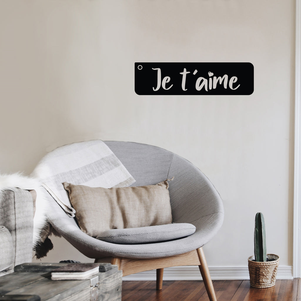 This inspirational & cute decal quote "Je T'aime"; is the perfect touch for your home or business. Use it for your living room; playroom; kids room or anywhere you want to bring some extra cute decoration. It's a vinyl sticker that is easy to put on any smooth and dry surface. Our modern designs don't just brighten up the room; but brighten up the day. Using top of the line vinyl across all of our production allows us to be the leaders in quality and design.