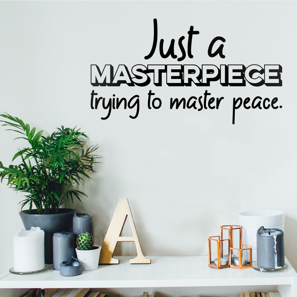 This "Just A Masterpiece Trying To Master Peace" is the perfect touch for your home. Use it for your bedroom; living room; or anywhere you want to bring some extra decoration. It's a vinyl sticker that is easy to put on all clean and smooth surfaces. Our modern designs don't just brighten up the room; but brighten up the day. Using top of the line vinyl across all of our production allows us to be the leaders in quality and design.