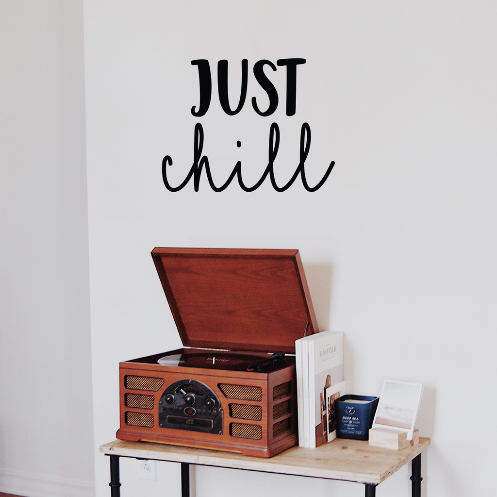 This awesome decal quote "Just Chill"; is the perfect touch for your home or dorm room. Use it for your apartment; kids room; small living room or anywhere you want to bring some extra decoration. It's a vinyl sticker that is easy to put on any smooth and dry surface. Our modern designs don't just brighten up the room; but brighten up the day. Using top of the line vinyl across all of our production allows us to be the leaders in quality and design.