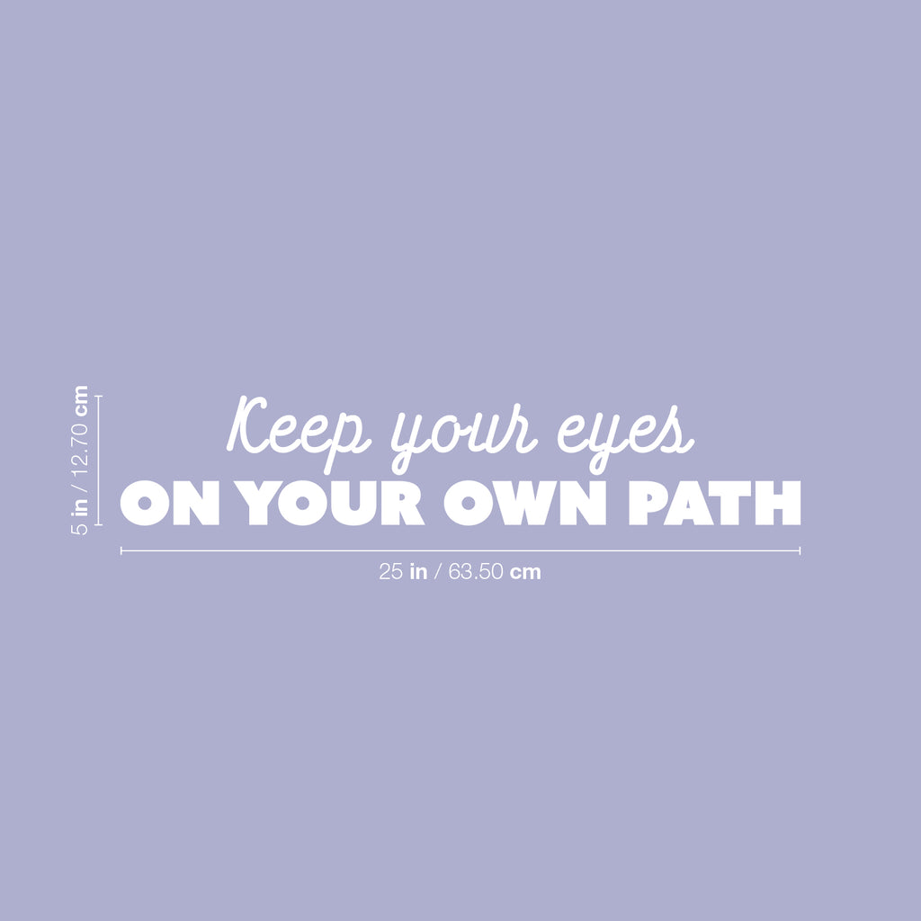 This awesome trendy positive decal quote "Keep Your Eyes On Your Own Path"; is the perfect touch for your office Use it for your school; coffee shop; storefront or anywhere you want to bring some extra positive decoration. It's a vinyl sticker that is easy to put on any smooth and dry surface. Our modern designs don't just brighten up the room; but brighten up the day. Using top of the line vinyl across all of our production allows us to be the leaders in quality and design.