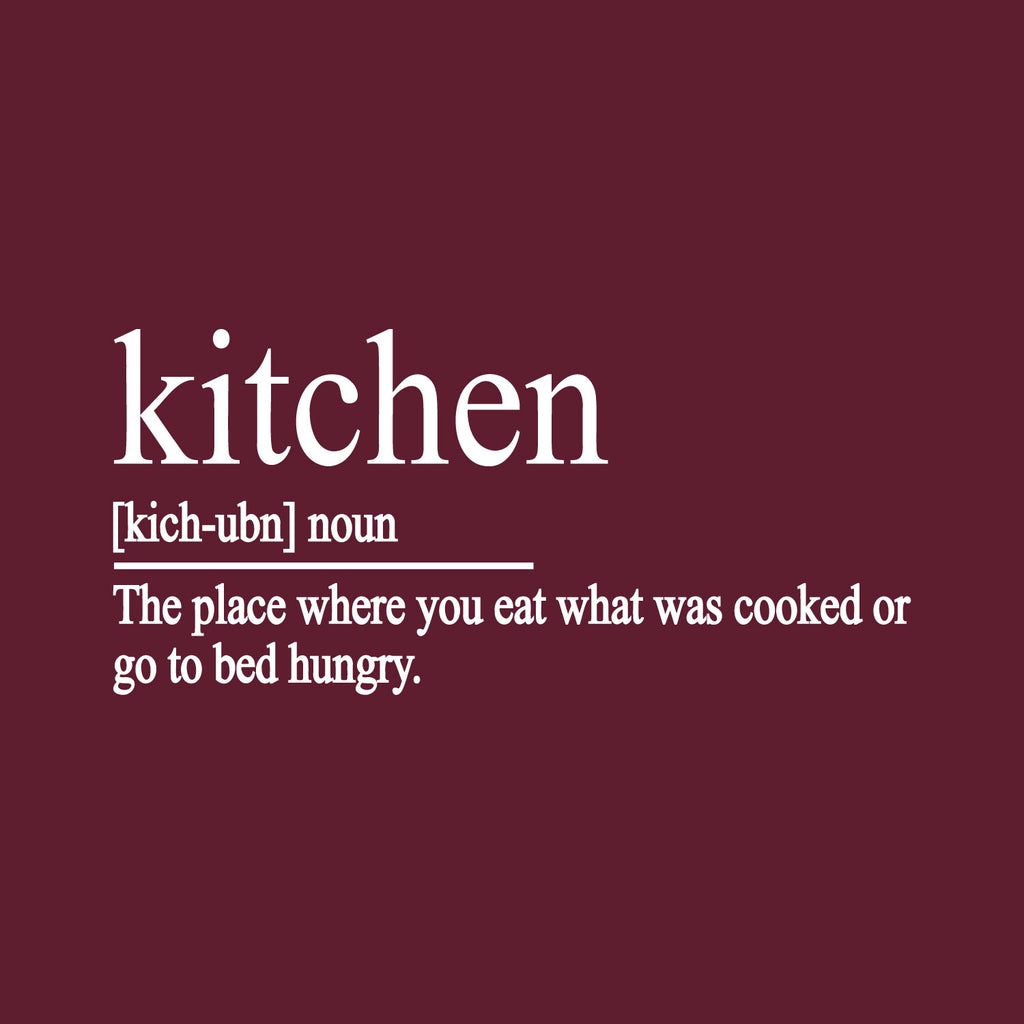 This awesome funny decal quote "Kitchen Definition"; is the perfect touch for your home. Use it for your dining room; restaurant; kitchen or anywhere you want to bring some extra decoration. It's a vinyl sticker that is easy to put on any smooth and dry surface. Our modern designs don't just brighten up the room; but brighten up the day. Using top of the line vinyl across all of our production allows us to be the leaders in quality and design.