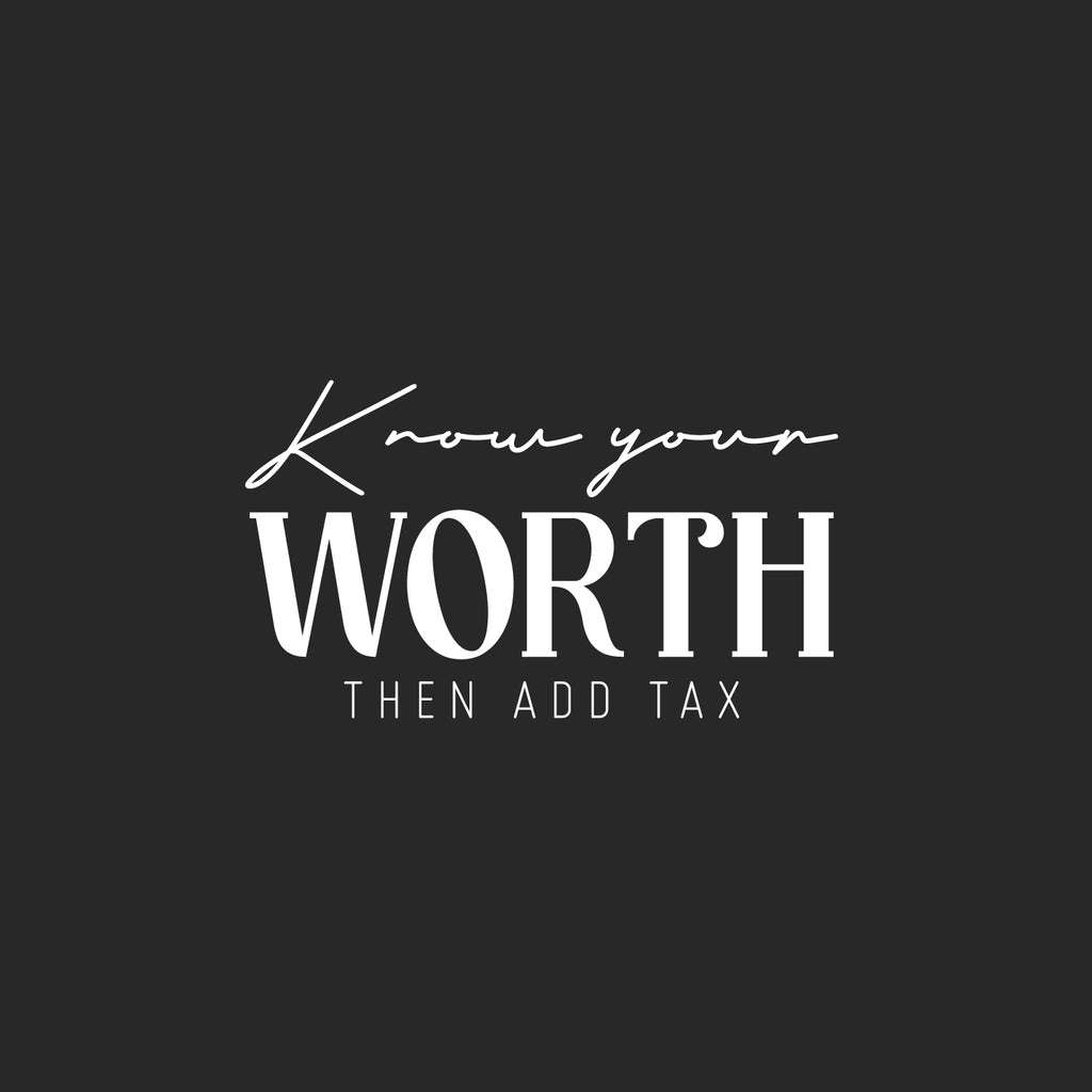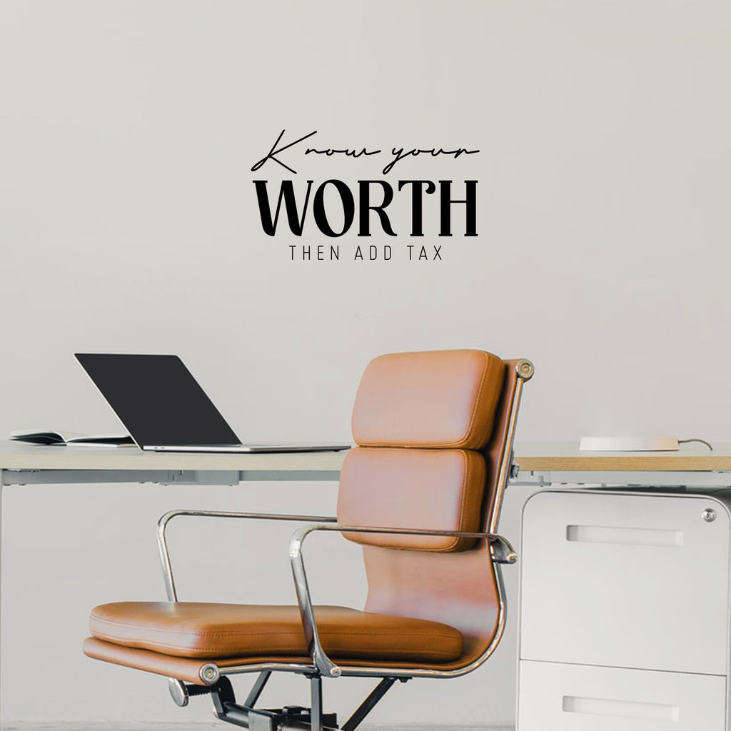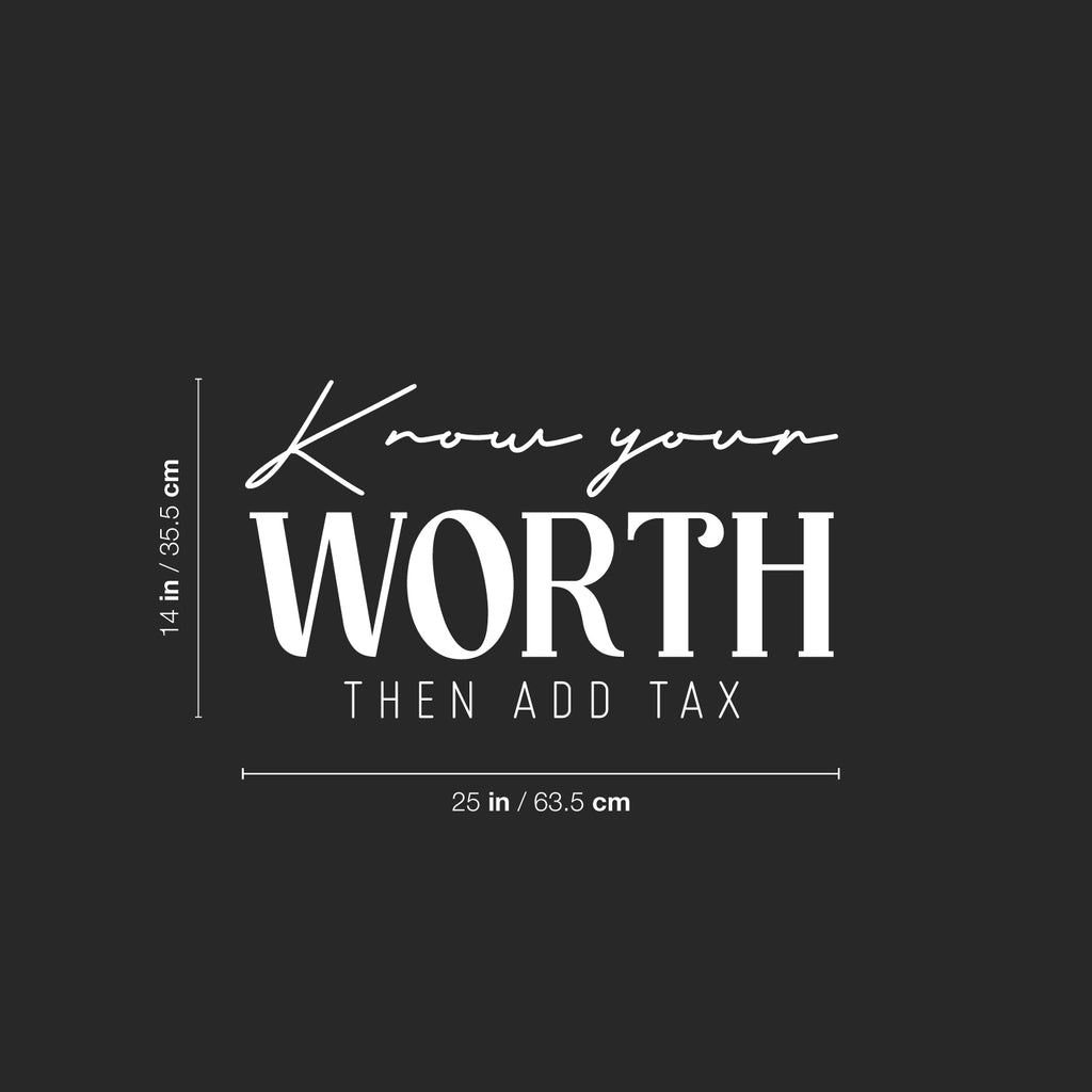 This awesome funny & sarcastic decal quote "Know Your Worth Then Add Tax"; is the perfect touch for your home or office. Use it for your store; coffee shop or anywhere you want to bring some extra funny decoration. It's a vinyl sticker that is easy to put on any smooth and dry surface. Our modern designs don't just brighten up the room; but brighten up the day. Using top of the line vinyl across all of our production allows us to be the leaders in quality and design.