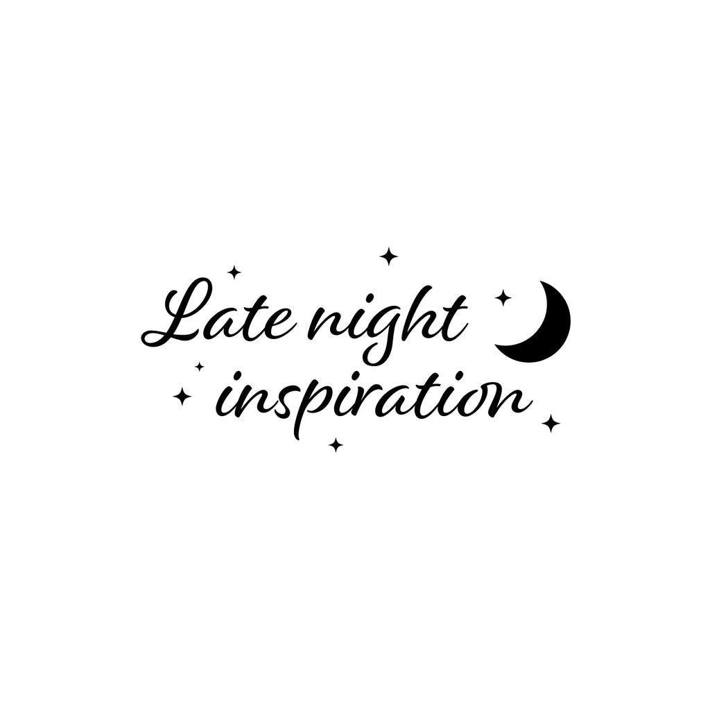This awesome positive decal quote "Late Night Inspiration"; is the perfect touch for your home. Use it for your bedroom; closet; living room or anywhere you want to bring some extra positive decoration. It's a vinyl sticker that is easy to put on any smooth and dry surface. Our modern designs don't just brighten up the room; but brighten up the day. Using top of the line vinyl across all of our production allows us to be the leaders in quality and design.