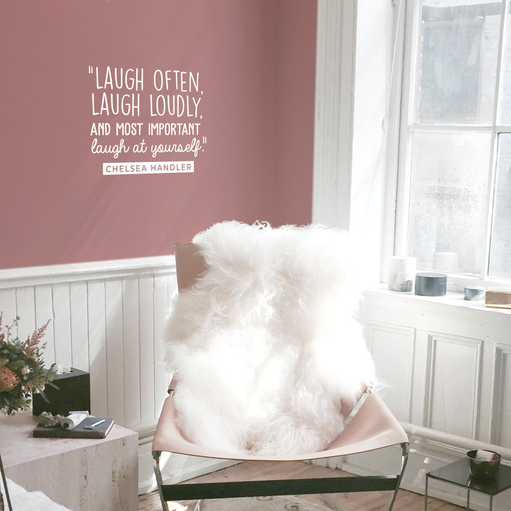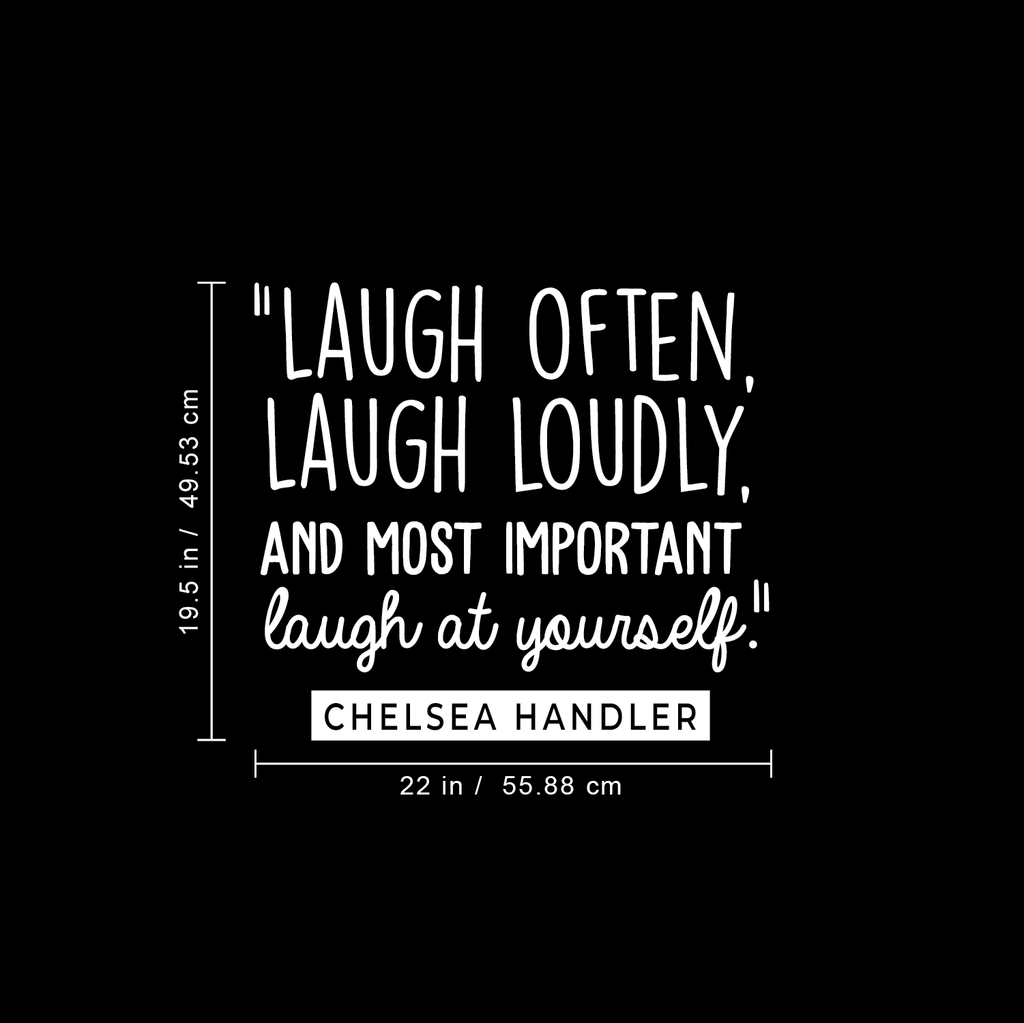 This awesome inspirational decal quote "Laugh Often; Laugh Loudly; And Most Important Laugh At Yourself "; is the perfect touch for your home or office. Use it for your bedroom; kids room; living room or anywhere you want to bring some extra positive decoration. It's a vinyl sticker that is easy to put on any smooth and dry surface. Our modern designs don't just brighten up the room; but brighten up the day. Using top of the line vinyl across all of our production allows us to be the leaders in quality and design.