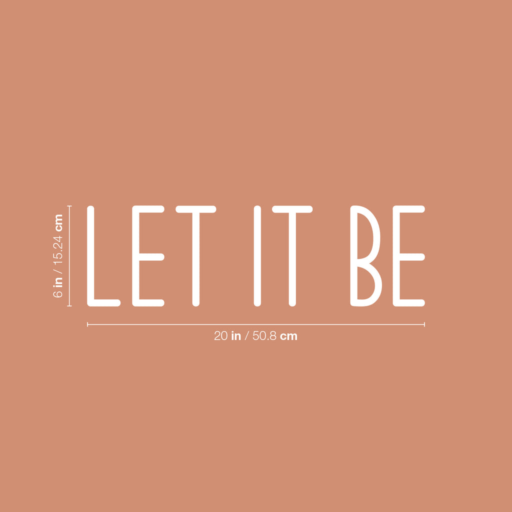 This awesome motivational decal quote "Let It Be"; is the perfect touch for your home or school. Use it for your living room; playroom; kids room or anywhere you want to bring some extra cute decoration. It's a vinyl sticker that is easy to put on any smooth and dry surface. Our modern designs don't just brighten up the room; but brighten up the day. Using top of the line vinyl across all of our production allows us to be the leaders in quality and design.