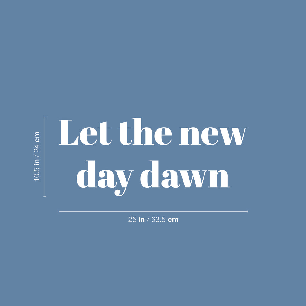 This awesome motivational decal quote "Let The New Day Dawn"; is the perfect touch for your home. Use it for your family room; kids room; bedroom or anywhere you want to bring some extra inspiring decoration. It's a vinyl sticker that is easy to put on any smooth and dry surface. Our modern designs don't just brighten up the room; but brighten up the day. Using top of the line vinyl across all of our production allows us to be the leaders in quality and design.