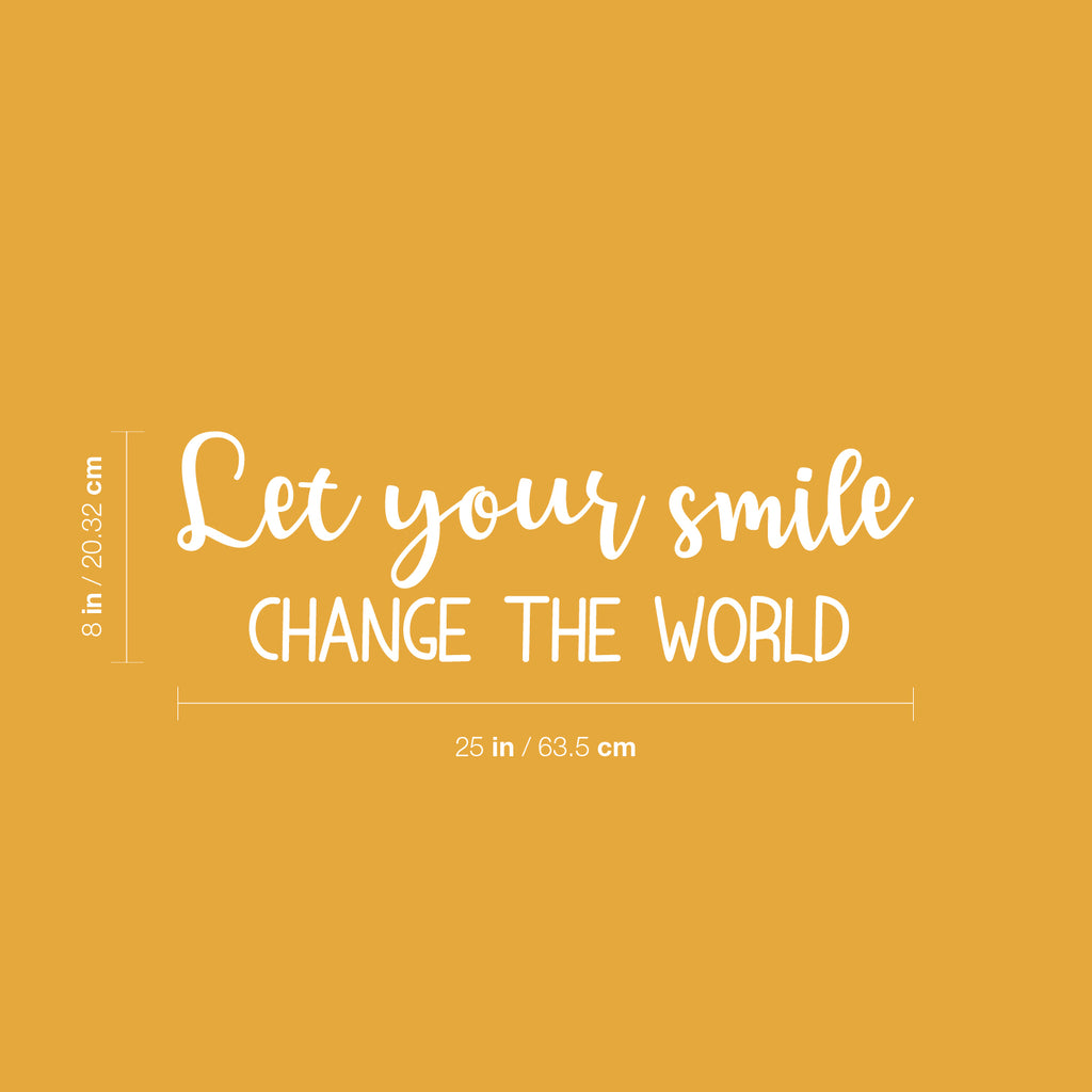This great decal quote "Let Your Smile Change The World"; is the perfect touch for your home. Use it for your kids room; living room or anywhere you want to bring some extra decoration. It's a vinyl sticker that is easy to put on any smooth and dry surface. Our modern designs don't just brighten up the room; but brighten up the day. Using top of the line vinyl across all of our production allows us to be the leaders in quality and design.