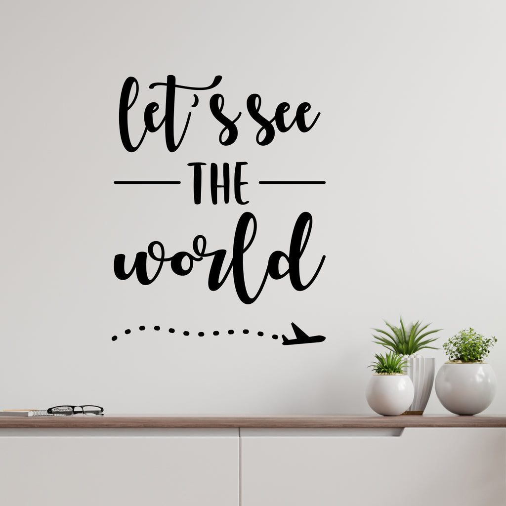 This awesome decal quote "Let's See The World"; is the perfect touch for your home. Use it for your living room; apartment or anywhere you want to bring some extra decoration. It's a vinyl sticker that is easy to put on any smooth and dry surface. Our modern designs don't just brighten up the room; but brighten up the day. Using top of the line vinyl across all of our production allows us to be the leaders in quality and design.