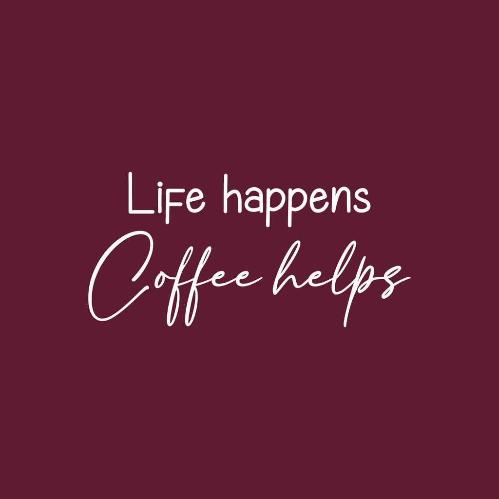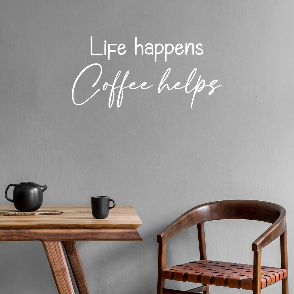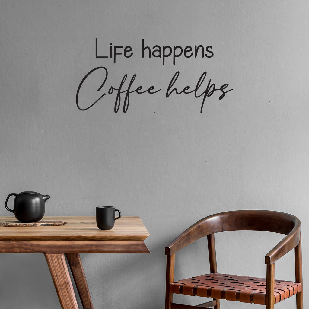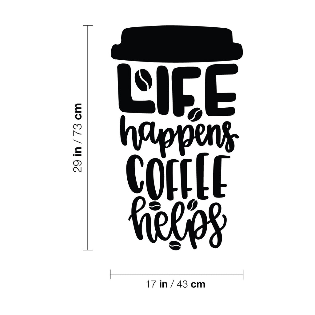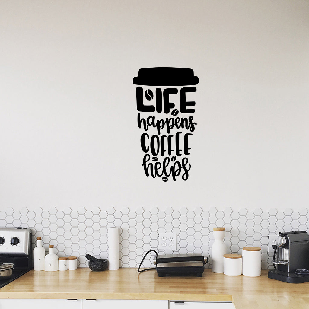This awesome funny & inspiring decal quote "Life Happens Coffee Helps"; is the perfect touch for your office or coffee shop. Use it for your dining room; restaurant; kitchen or anywhere you want to bring some extra fun decoration. It's a vinyl sticker that is easy to put on any smooth and dry surface. Our modern designs don't just brighten up the room; but brighten up the day. Using top of the line vinyl across all of our production allows us to be the leaders in quality and design.