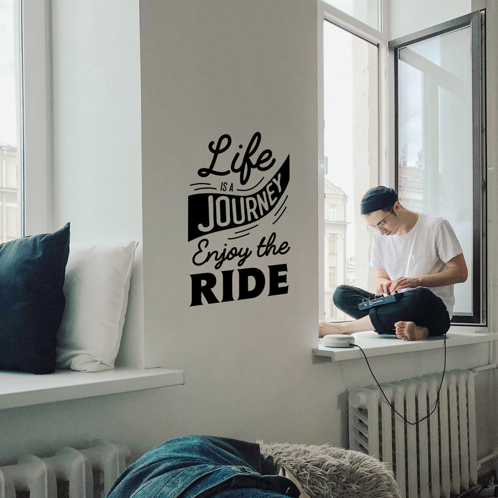 This inspirational "Life Is A Journey Enjoy The Ride" life quotes wall art decal is motivational and the perfect touch for both indoor and outdoor decoration. It is a Vinyl sticker that is easy to put onto almost any surface and really brings a room together adding the perfect amount of decoration. This motivational vinyl decal quote reminds people to be true to themselves and is inspiring. Our motivational quotes don't just brighten up the room; but brighten up the day. Using top of the line vinyl across all of our production allows us to be the leaders in quality and design. Each vinyl decal quotes range in color bringing variety to you wherever you are.