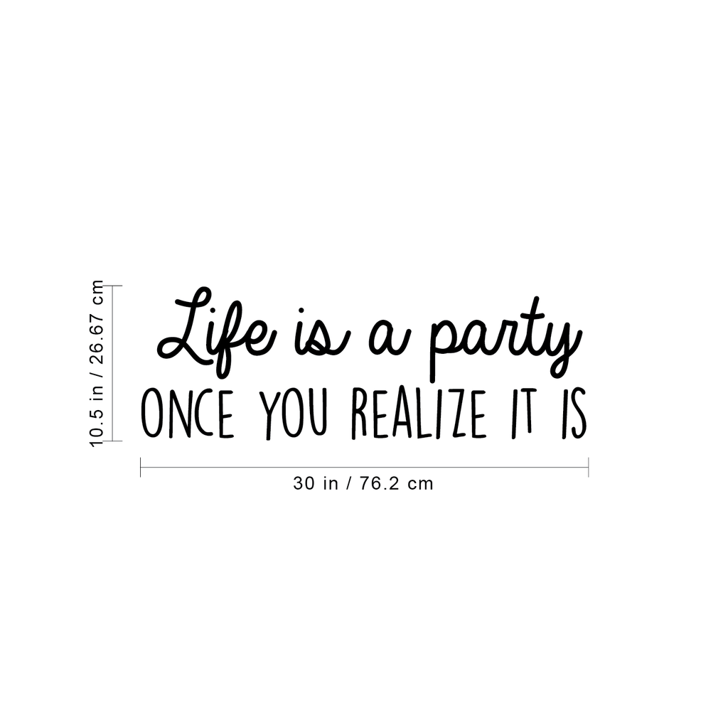 This awesome positive decal quote "Life Is A Party Once You Realize It Is"; is the perfect touch for your home or office. Use it for your bedroom; closet; living room or anywhere you want to bring some extra positive decoration. It's a vinyl sticker that is easy to put on any smooth and dry surface. Our modern designs don't just brighten up the room; but brighten up the day. Using top of the line vinyl across all of our production allows us to be the leaders in quality and design.