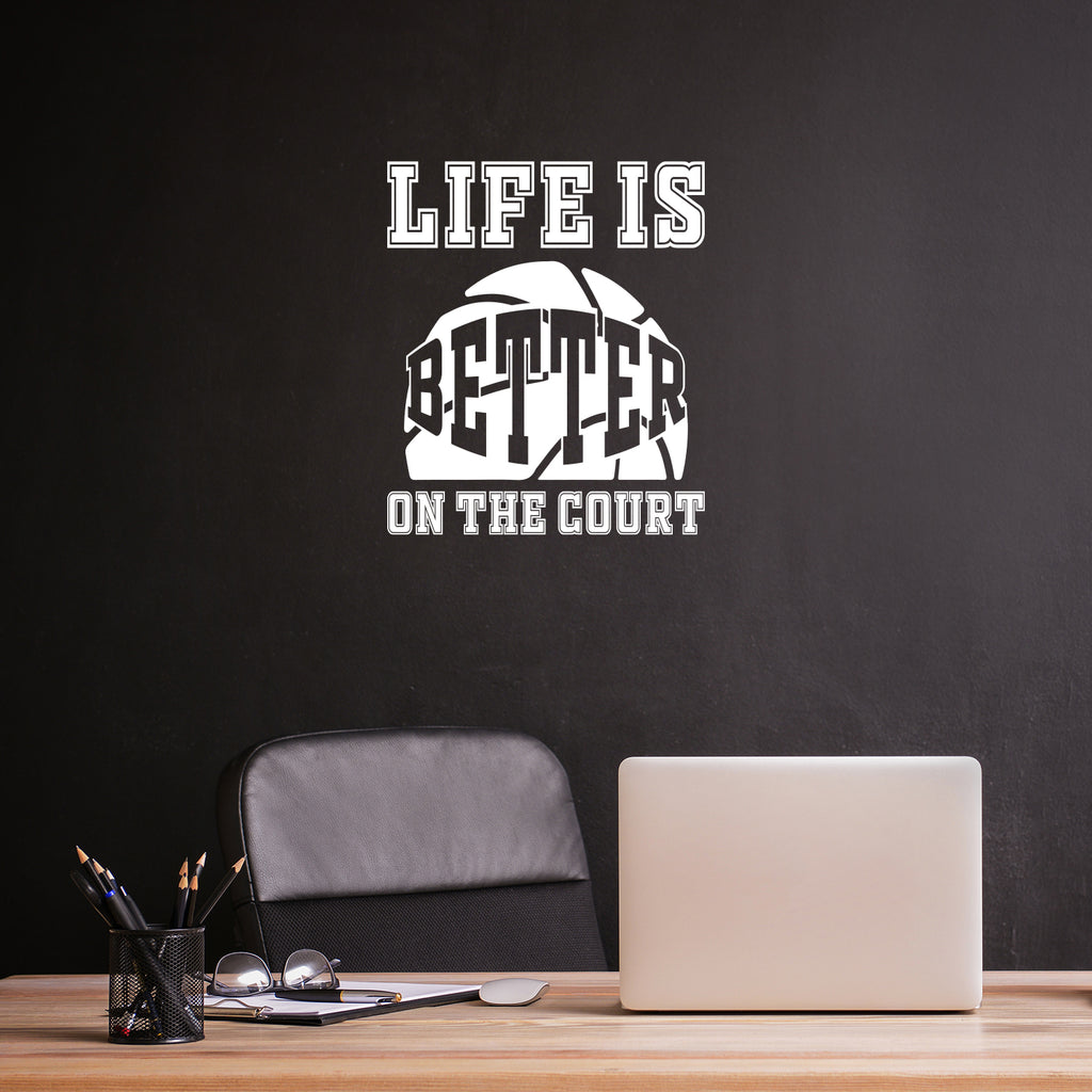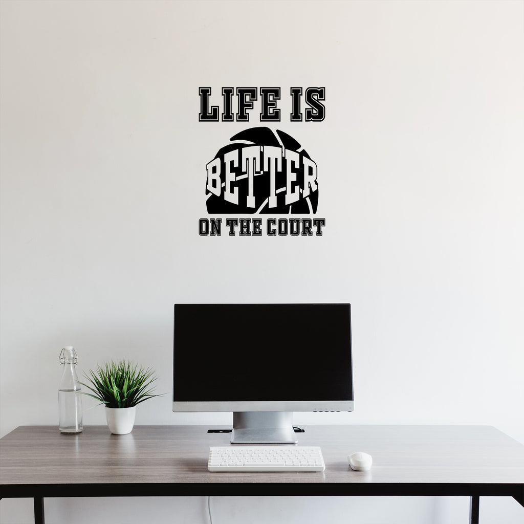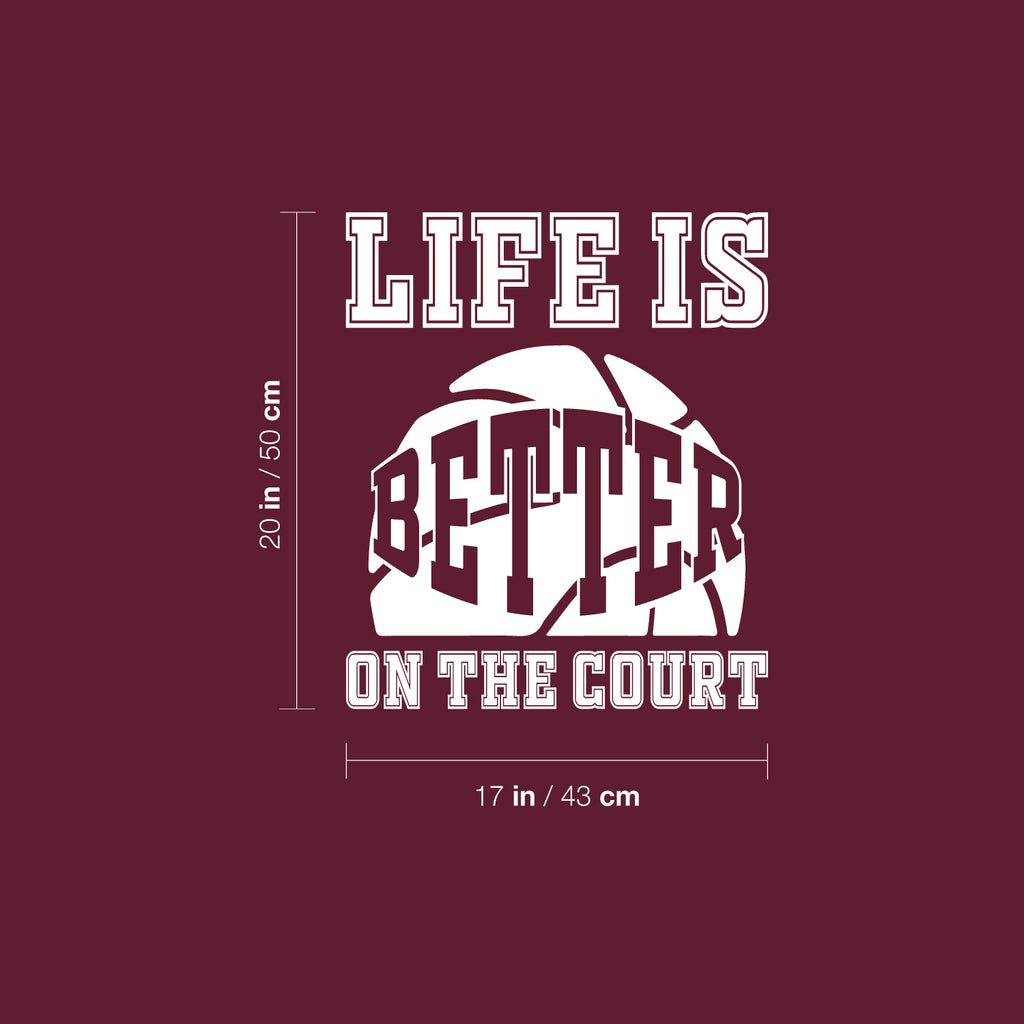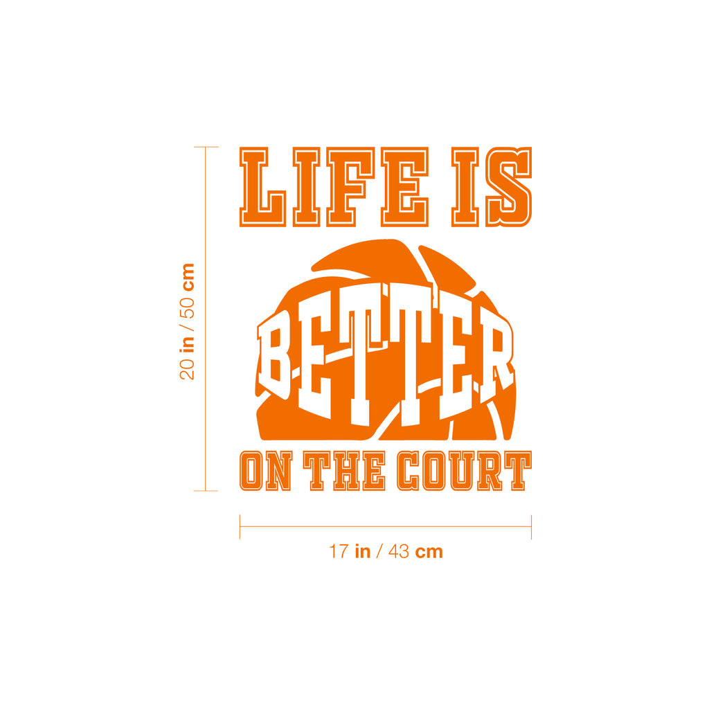 Vinyl Wall Art Decal - Life Is Better On The Court - Trendy Fun Motivational Basketball Quote Sticker For School Classroom College Office Sport Bar Storefront Gym Fitness Decor
