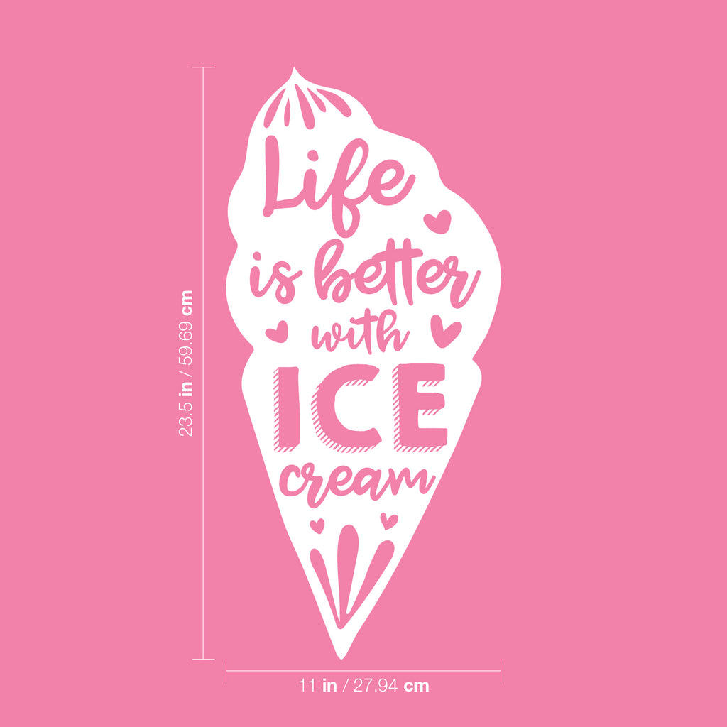 This awesome inspirational decal quote "Life Is Better With Ice Cream"; is the perfect touch for your home or ice cream shop. Use it for your bedroom; kids room; pastry shop or anywhere you want to bring some extra cute decoration. It's a vinyl sticker that is easy to put on any smooth and dry surface. Our modern designs don't just brighten up the room; but brighten up the day. Using top of the line vinyl across all of our production allows us to be the leaders in quality and design.