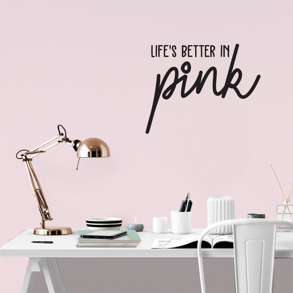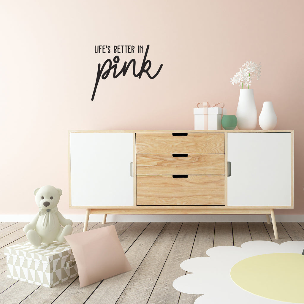 This awesome cute decal quote "Life's Better In Pink"; is the perfect touch for your home or work. Use it for your bedroom; closet; living room or anywhere you want to bring some extra girly decoration. It's a vinyl sticker that is easy to put on any smooth and dry surface. Our modern designs don't just brighten up the room; but brighten up the day. Using top of the line vinyl across all of our production allows us to be the leaders in quality and design.