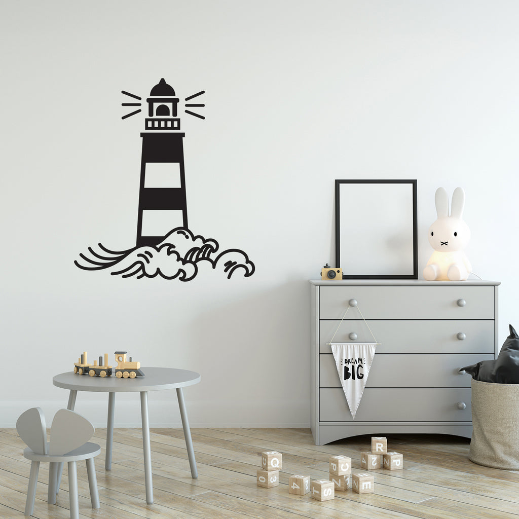 This cute decal "Lighthouse Waves"; is the perfect touch for your home. Use it for your playroom; kids room or anywhere you want to bring some extra cute decoration. It's a vinyl sticker that is easy to put on any smooth and dry surface. Our modern designs don't just brighten up the room; but brighten up the day. Using top of the line vinyl across all of our production allows us to be the leaders in quality and design.