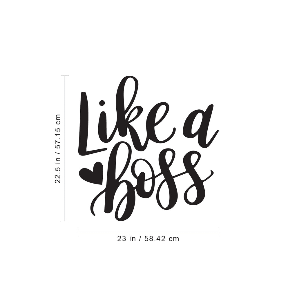 This optimistic decal quote "Like A Boss"; is the perfect touch for your school or office. Use it for your living room; classroom; playroom or anywhere you want to bring some extra positive decoration. It's a vinyl sticker that is easy to put on any smooth and dry surface. Our modern designs don't just brighten up the room; but brighten up the day. Using top of the line vinyl across all of our production allows us to be the leaders in quality and design.