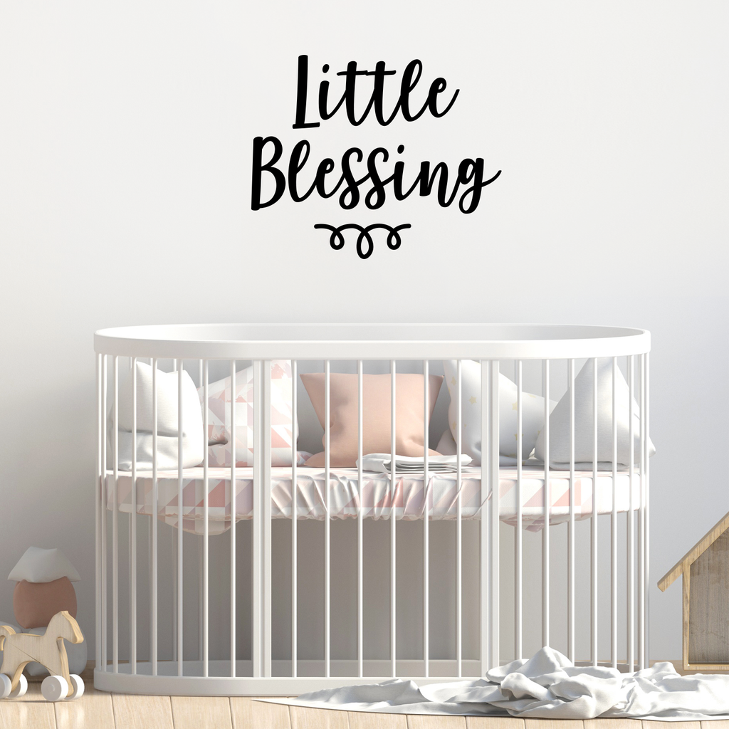 This awesome decal quote "Little Blessing"; is the perfect touch for your home or playroom. Use it for your kids room; home; baby room or anywhere you want to bring some extra cute decoration. It's a vinyl sticker that is easy to put on any smooth and dry surface. Our modern designs don't just brighten up the room; but brighten up the day. Using top of the line vinyl across all of our production allows us to be the leaders in quality and design.