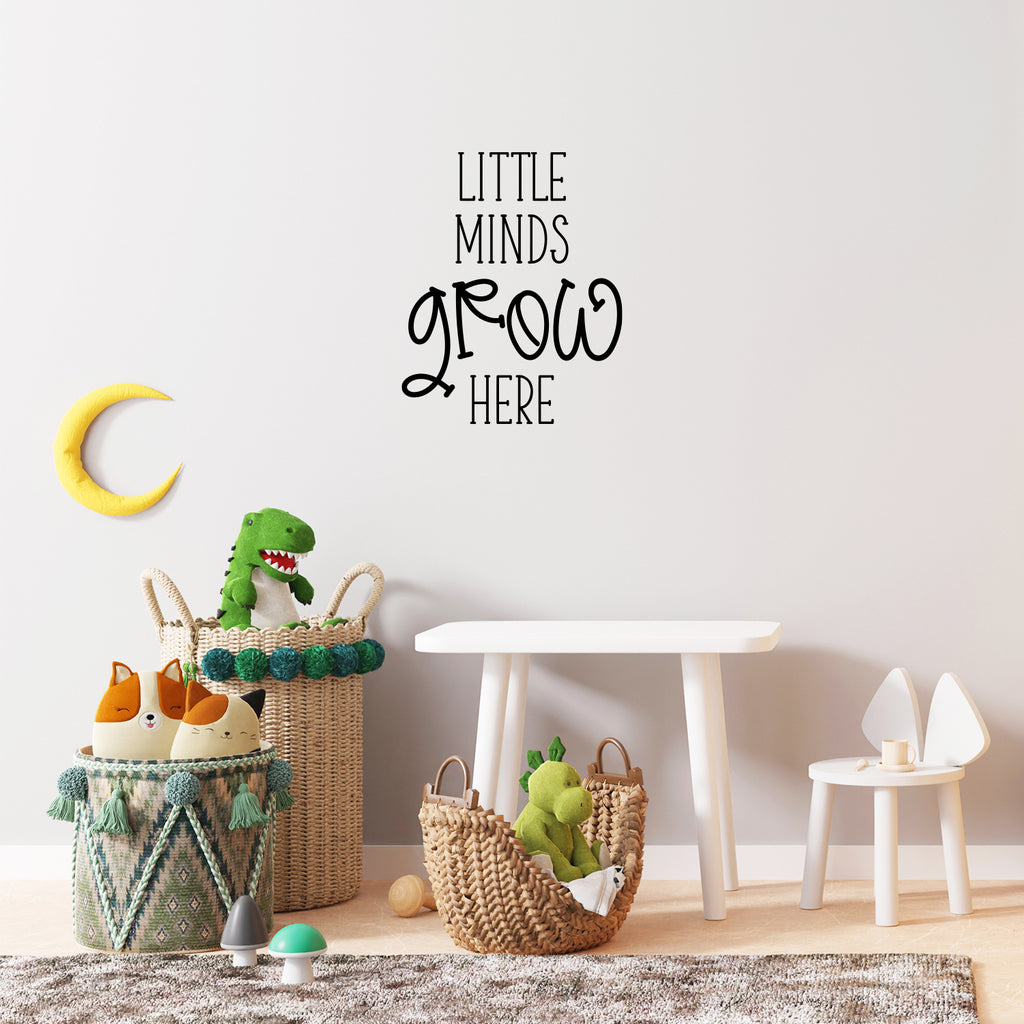 This cute decal quote "Little Minds Grow Here" is the perfect touch for your home. Use it for your nursery; playroom; kids room or anywhere you want to bring some extra cute decoration. It's a vinyl sticker that is easy to put on any smooth and dry surface. Our modern designs don't just brighten up the room; but brighten up the day. Using top of the line vinyl across all of our production allows us to be the leaders in quality and design.