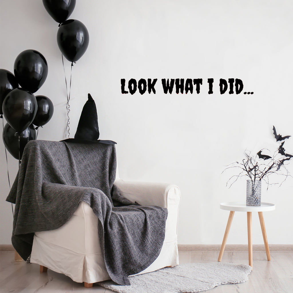This seasonal design decal "Look What I Did..."; is the perfect touch for your home or store. Use it for your entry door; windows; living room or anywhere you want to bring some extra cute decoration. It's a vinyl sticker that is easy to put on any smooth and dry surface. Our modern designs don't just brighten up the room; but brighten up the day. Using top of the line vinyl across all of our production allows us to be the leaders in quality and design.