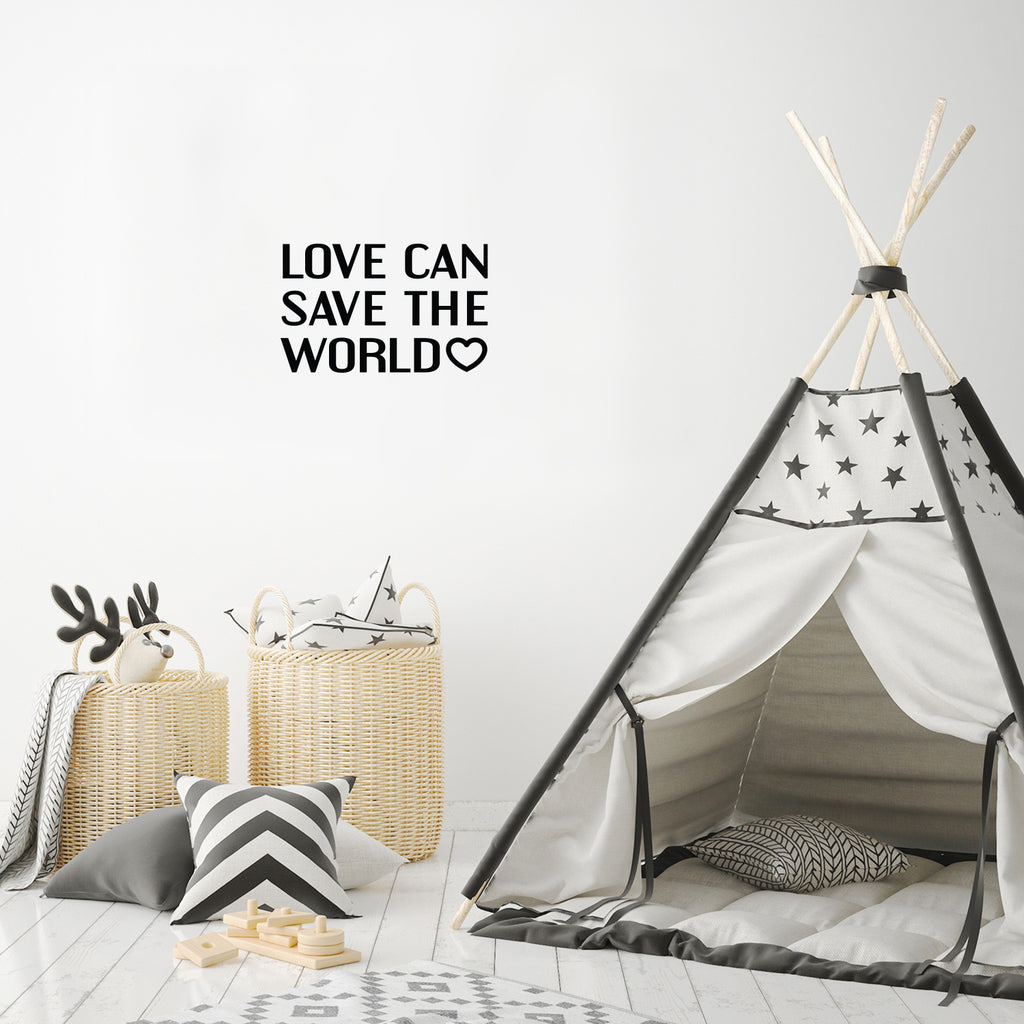 This awesome motivational decal quote "Love Can Save The World ?"; is the perfect touch for your home or school. Use it for your living room; closet; bathroom or anywhere you want to bring some extra cute decoration. It's a vinyl sticker that is easy to put on any smooth and dry surface. Our modern designs don't just brighten up the room; but brighten up the day. Using top of the line vinyl across all of our production allows us to be the leaders in quality and design.