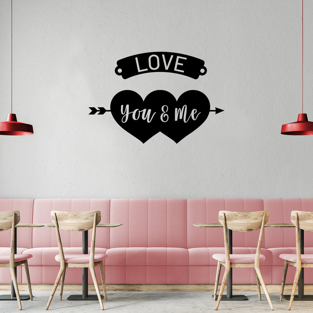 This awesome decal quote "Love You and Me"; is the perfect touch for your home or store. Use it for your storefront; entryway or as a Valentine's gift for someone special. It's a vinyl sticker that is easy to put on any smooth and dry surface. Our modern designs don't just brighten up the room; but brighten up the day. Using top of the line vinyl across all of our production allows us to be the leaders in quality and design.