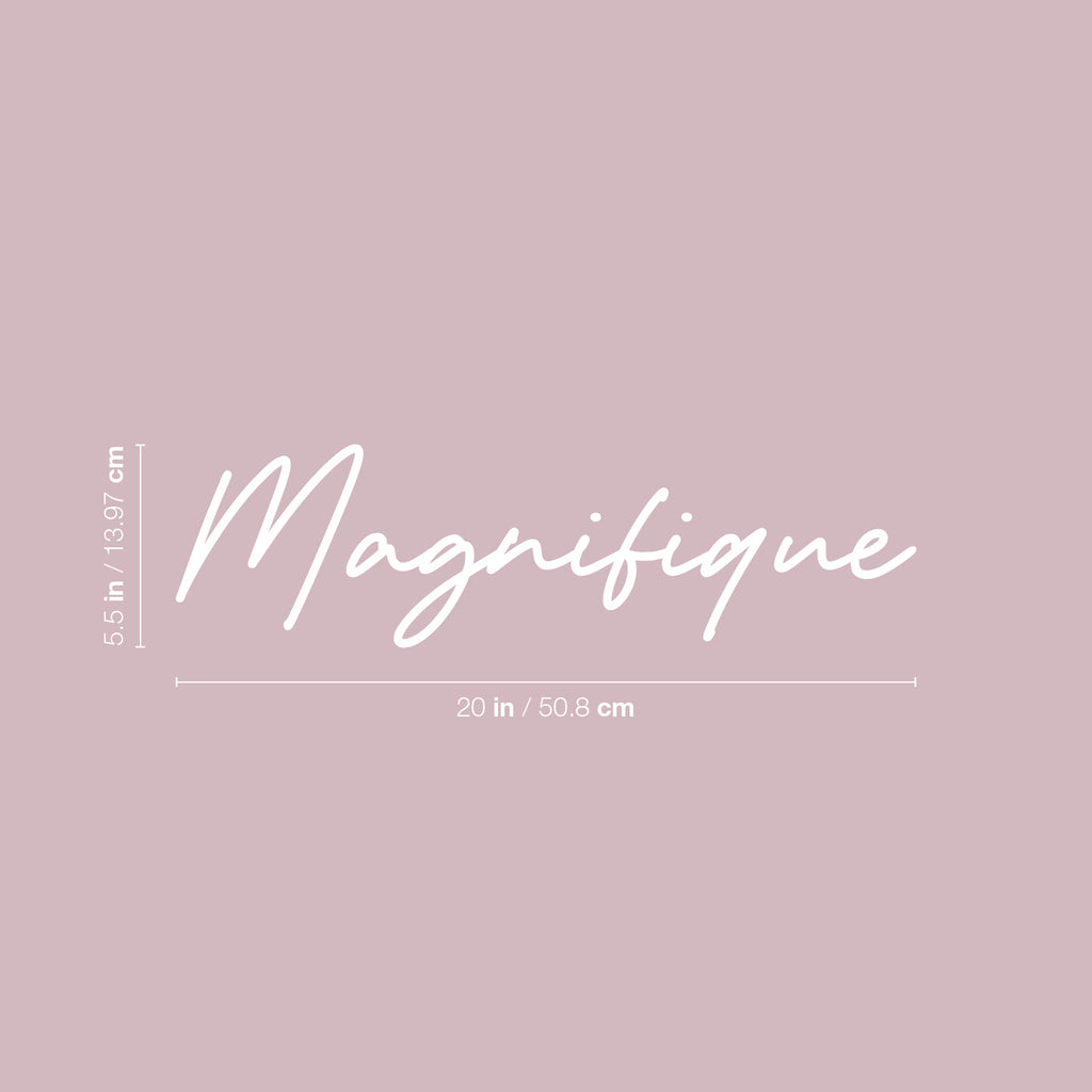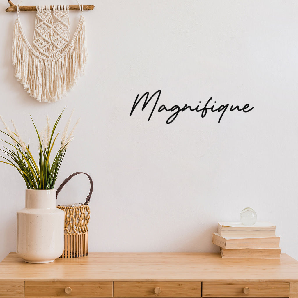 This empowering decal quote "Magnifique"; is the perfect touch for your home or work. Use it for your dorm room; home office or anywhere you want to bring some extra decoration. It's a vinyl sticker that is easy to put on any smooth and dry surface. Our modern designs don't just brighten up the room; but brighten up the day. Using top of the line vinyl across all of our production allows us to be the leaders in quality and design.