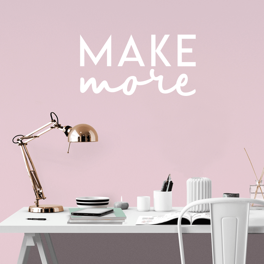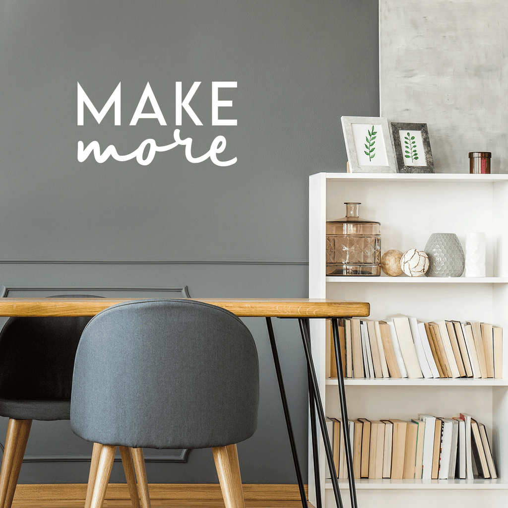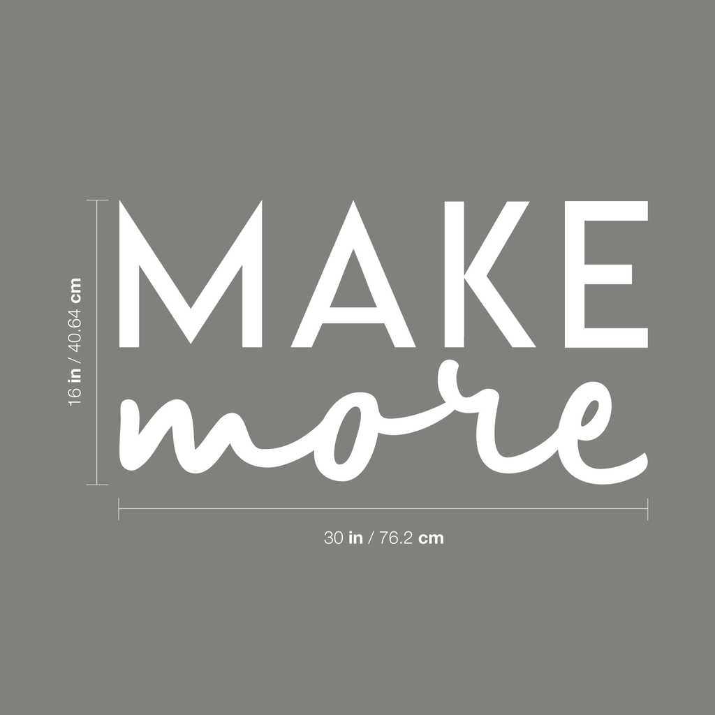 This awesome decal quote "Make More"; is the perfect touch for your home or workplace. Use it for your bedroom; living room; home office; or anywhere you want to bring some extra decoration. It's a vinyl sticker that is easy to put on any smooth and dry surface. Our modern designs don't just brighten up the room; but brighten up the day. Using top of the line vinyl across all of our production allows us to be the leaders in quality and design.