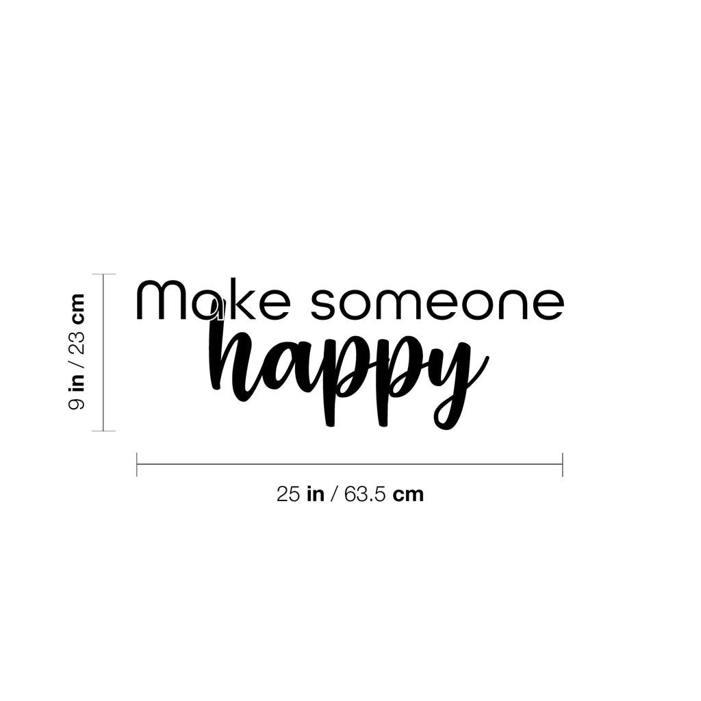 This awesome positive decal quote "Make Someone Happy"; is the perfect touch for your home or office. Use it for your store; coffee shop; work or anywhere you want to bring some extra inspiring decoration. It's a vinyl sticker that is easy to put on any smooth and dry surface. Our modern designs don't just brighten up the room; but brighten up the day. Using top of the line vinyl across all of our production allows us to be the leaders in quality and design.