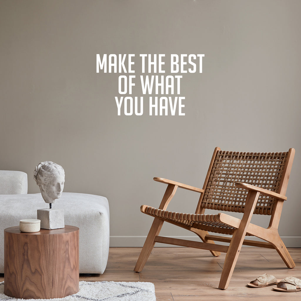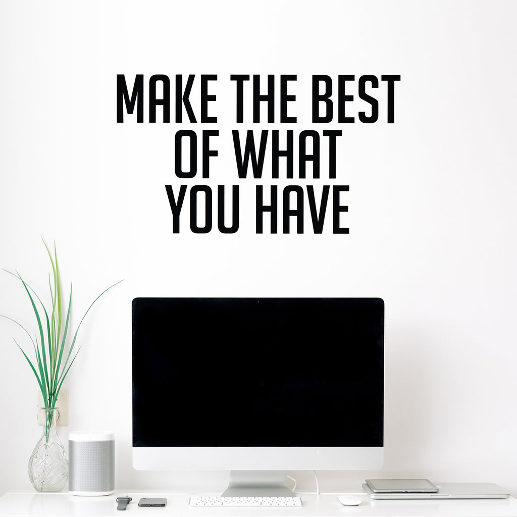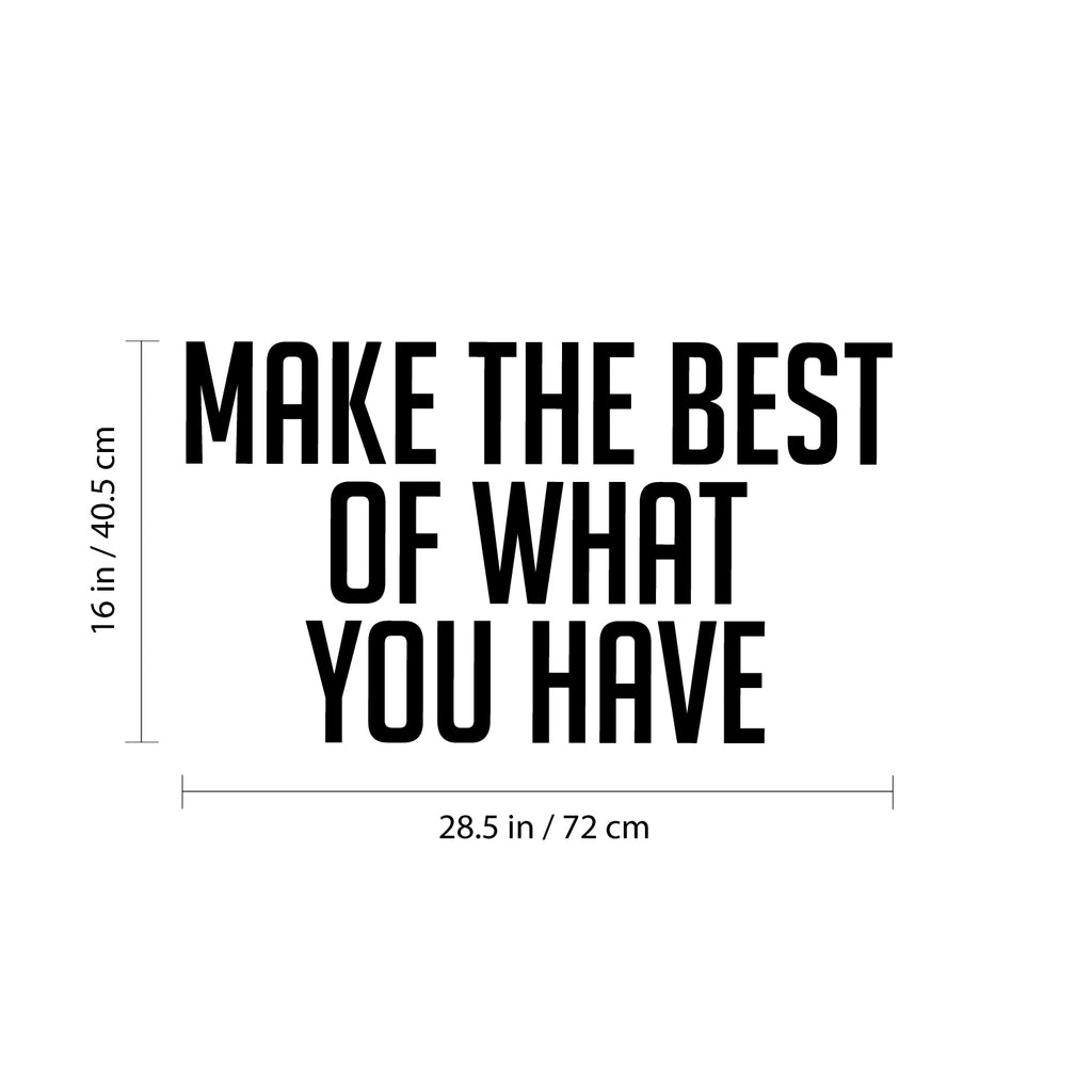 This awesome positive decal quote "Make The Best Of What You Have"; is the perfect touch for your home or office. Use it for your living room; school; coffee shop or anywhere you want to bring some extra motivational decoration. It's a vinyl sticker that is easy to put on any smooth and dry surface. Our modern designs don't just brighten up the room; but brighten up the day. Using top of the line vinyl across all of our production allows us to be the leaders in quality and design.