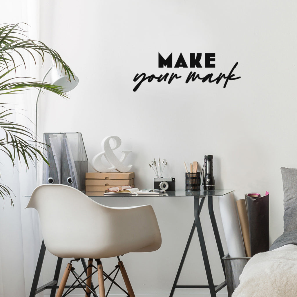 This motivational & positive decal quote "Make Your Mark"; is the perfect touch for your school or office. Use it for your living room; playroom; kids room or anywhere you want to bring some extra inspirational decoration. It's a vinyl sticker that is easy to put on any smooth and dry surface. Our modern designs don't just brighten up the room; but brighten up the day. Using top of the line vinyl across all of our production allows us to be the leaders in quality and design.