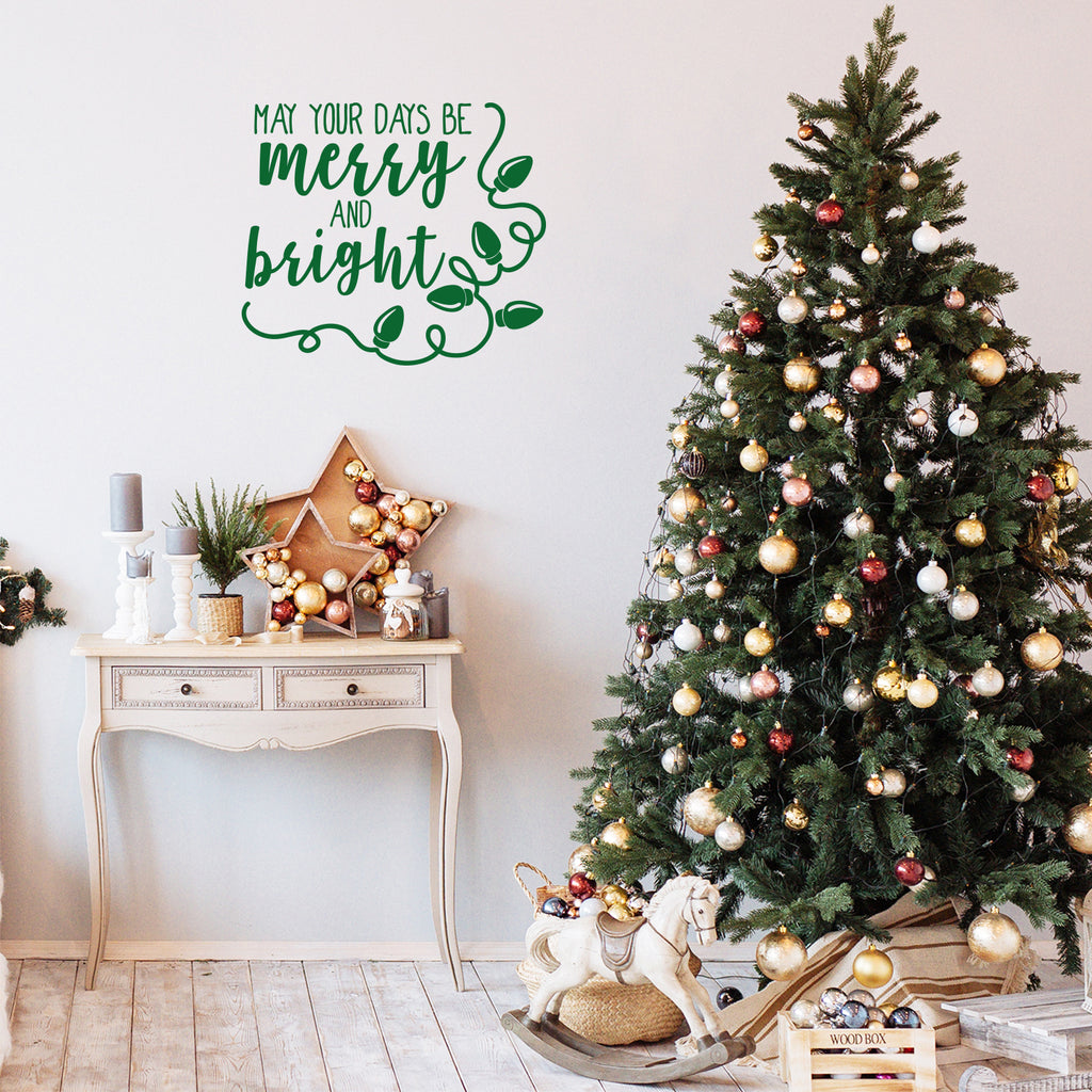 This awesome cute & inspirational holyday season decal quote "May Your Days Be Merry And Bright"; is the perfect touch for your home or business. Use it for your entry door; business storefront; school or anywhere you want to bring some positive decoration. It's a vinyl sticker that is easy to put on any smooth and dry surface. Our modern designs don't just brighten up the room; but brighten up the day. Using top of the line vinyl across all of our production allows us to be the leaders in quality and design.