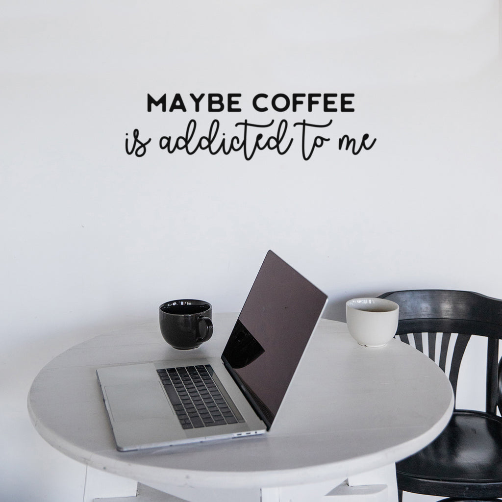 This awesome decal quote "Maybe Coffee Is Addicted To Me"; is the perfect touch for your home. Use it for your kitchen; living room; office kitchenette or anywhere you want to bring some extra decoration. It's a vinyl sticker that is easy to put on any smooth and dry surface. Our modern designs don't just brighten up the room; but brighten up the day. Using top of the line vinyl across all of our production allows us to be the leaders in quality and design.