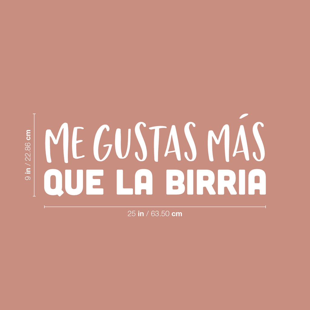 This awesome funny & sarcastic decal quote "Me Gustas Más Que La Birria"; is the perfect touch for your home or store. Use it for your kitchen; coffee shop; restaurant or anywhere you want to bring some extra fun decoration. It's a vinyl sticker that is easy to put on any smooth and dry surface. Our modern designs don't just brighten up the room; but brighten up the day. Using top of the line vinyl across all of our production allows us to be the leaders in quality and design.