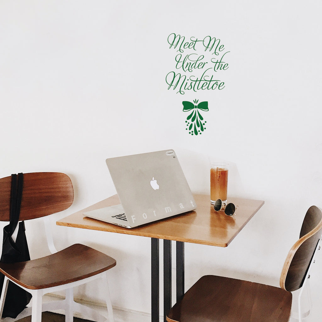 This Christmas decal quote "Meet Me Under The Mistletoe" is the perfect touch for your home. Use it for your living room; window; or anywhere you want to bring some extra decoration. It's a vinyl sticker that is easy to put on any smooth and dry surface. Our modern designs don't just brighten up the room; but brighten up the day. Using top of the line vinyl across all of our production allows us to be the leaders in quality and design.