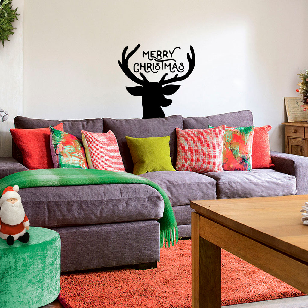 This "Merry Christmas" Reindeer wall art decal is the perfect touch for both indoor and outdoor decoration. It’s a vinyl sticker that is easy to put on almost any smooth surface and really brings a room together adding the perfect touch of decoration. This vinyl decal is perfect for Christmas season in the Winter months to put in the living room; near the fireplace; or in the office. Our modern decals don’t just brighten up the room; but brighten up the day. Using top of the line vinyl across all of our production allows us to be the leaders in quality and design.The easiest surfaces for vinyl to stick on is Windows Walls Mirrors Dorm Rooms Cars Lockers Flat and Smooth Surfaces Tables and Glass CabinetsAll vinyl packages come with easy to follow instructions further explaining just how simple it is to apply vinyl on and off your surface of choice. Prior to applying the vinyl; be sure the surface is clean and oil free for best results. This vinyl is waterproof and is not permanent so it’s not only easy to use but easy to remove as well. In general; vinyl lettering is one of the latest and greatest trends in home decoration. Because our products are high quality; they give the illusion of painted wall art without the mess; cost; or time. What are you waiting for? Let’s get crafty!