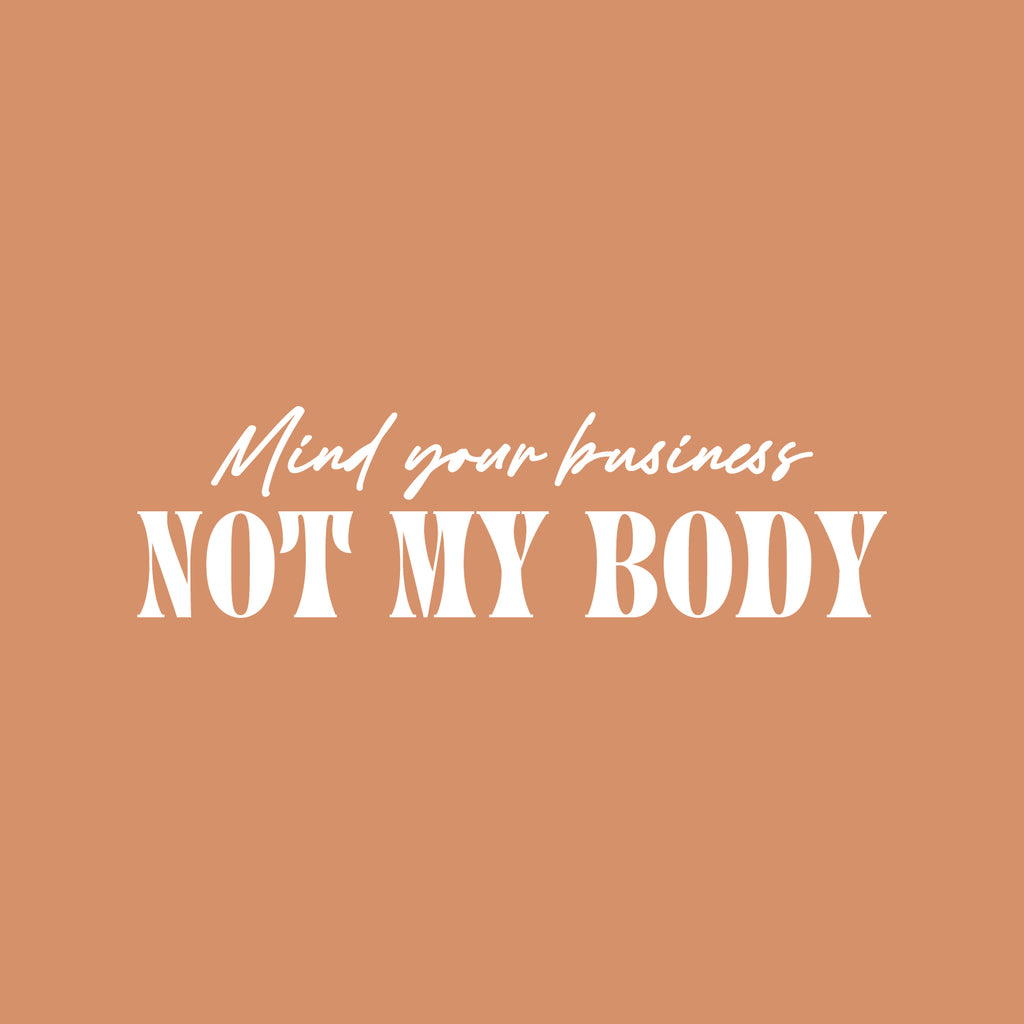 This great decal quote "Mind Your Business Not My Body"; is the perfect touch for your home. Use it for your dorm room; living room or anywhere you want to bring some extra decoration. It's a vinyl sticker that is easy to put on any smooth and dry surface. Our modern designs don't just brighten up the room; but brighten up the day. Using top of the line vinyl across all of our production allows us to be the leaders in quality and design.