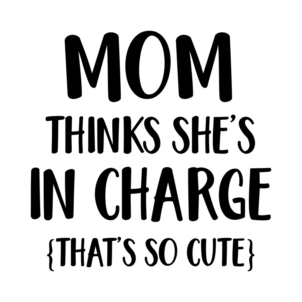 This awesome decal quote "Mom Thinks She's In Charge That's So Cute"; is the perfect touch for your home. Use it for your kids room; home; baby room or anywhere you want to bring some extra cute decoration. It's a vinyl sticker that is easy to put on any smooth and dry surface. Our modern designs don't just brighten up the room; but brighten up the day. Using top of the line vinyl across all of our production allows us to be the leaders in quality and design.