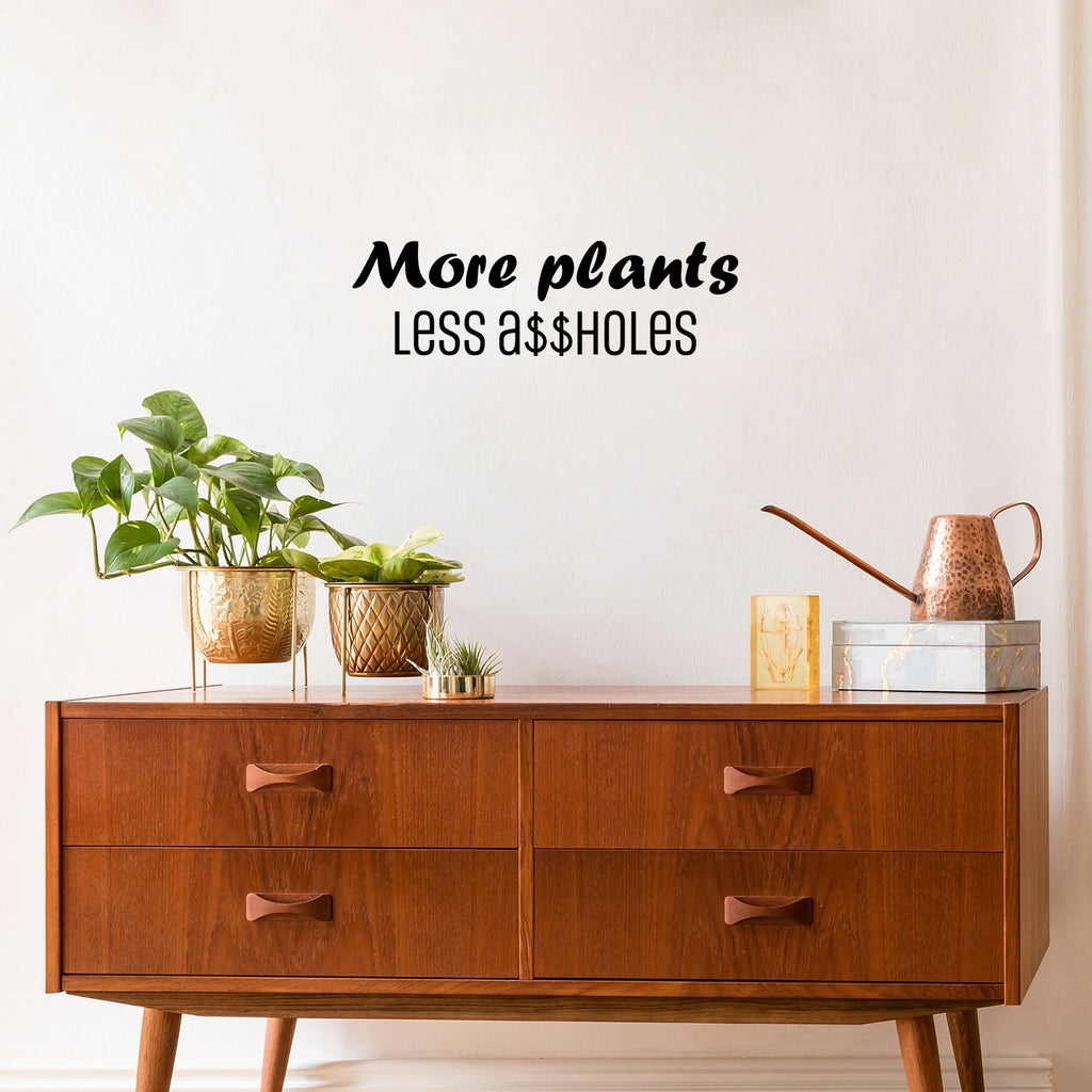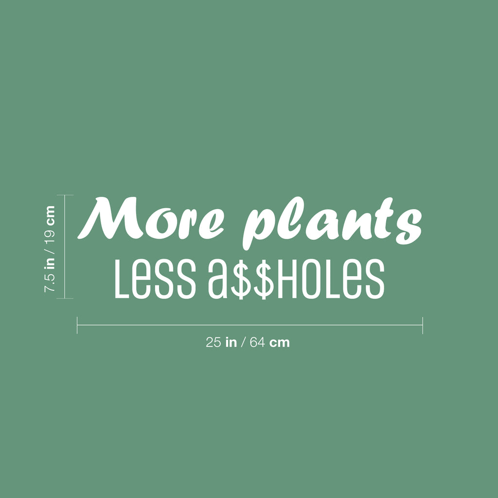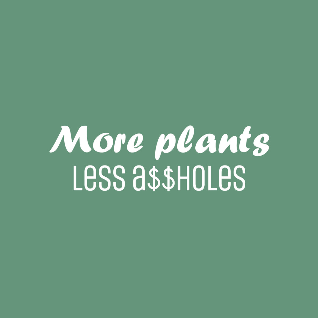 This awesome funny & sarcastic decal quote "More Plants Less A$$holes"; is the perfect touch for your home or office. Use it for your store; coffee shop or anywhere you want to bring some extra fun decoration. It's a vinyl sticker that is easy to put on any smooth and dry surface. Our modern designs don't just brighten up the room; but brighten up the day. Using top of the line vinyl across all of our production allows us to be the leaders in quality and design.
