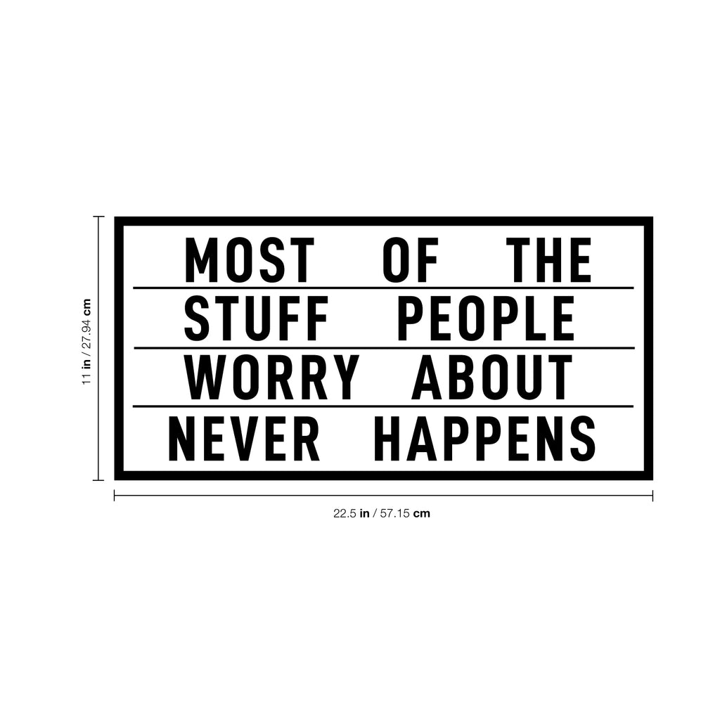 Vinyl Wall Art Decal - Most Of The Stuff People Worry About Never Happens - - Modern Life Quotes Bedroom Decoration - Positive Indoor Outdoor Motivational Home Wall Living Room Decor