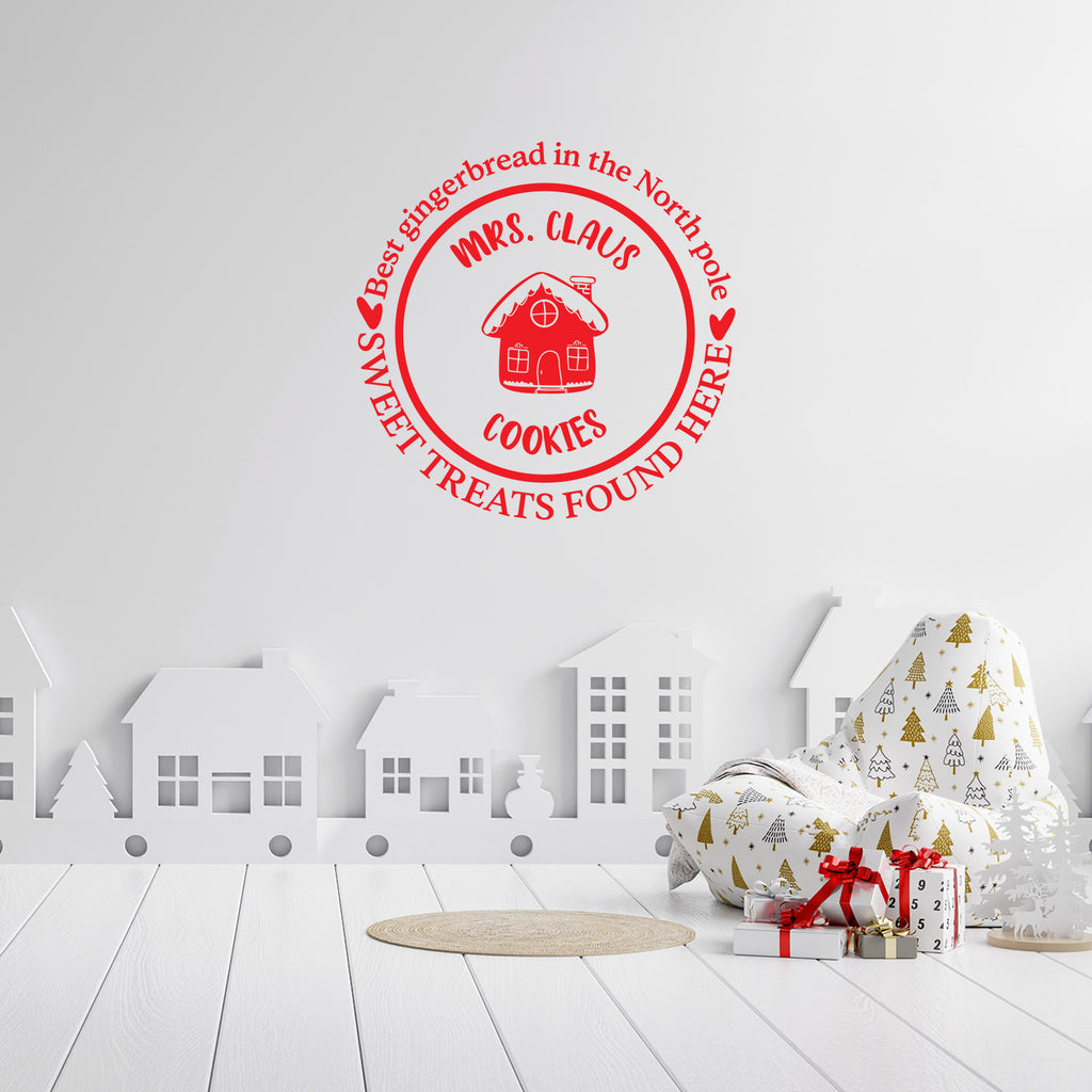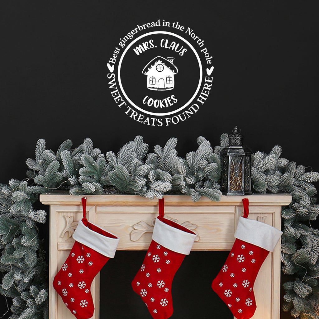 This holiday season decal "Mrs Claus Cookies"; is the perfect touch for your home or store. Use it for your home or anywhere you want to bring some extra decoration. It's a vinyl sticker that is easy to put on any smooth and dry surface. Our modern designs don't just brighten up the room; but brighten up the day. Using top of the line vinyl across all of our production allows us to be the leaders in quality and design.