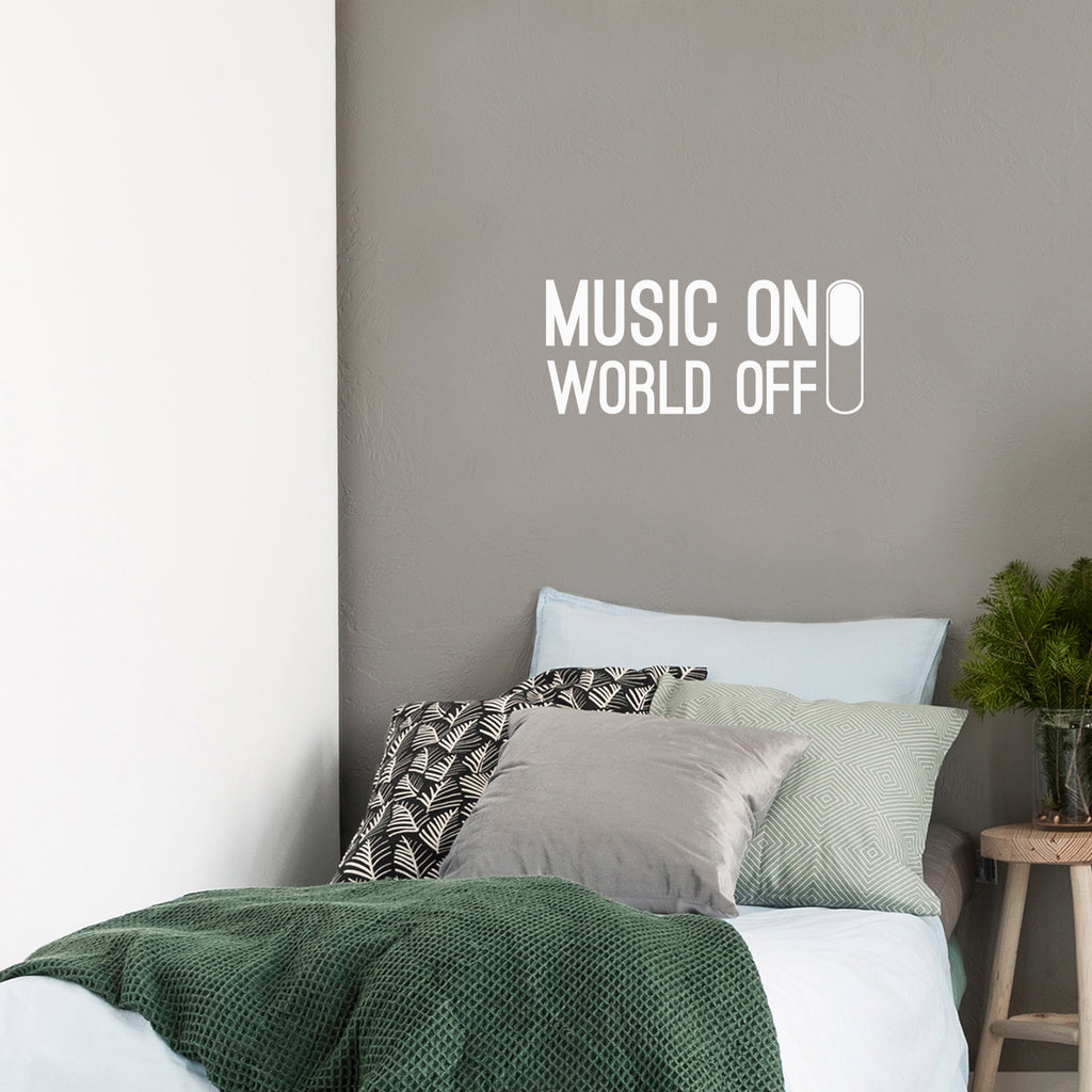 This awesome fun positive decal quote "Music On World Off"; is the perfect touch for your school or office. Use it for your make up mirror; bathroom; business or anywhere you want to bring some extra positive decoration. It's a vinyl sticker that is easy to put on any smooth and dry surface. Our modern designs don't just brighten up the room; but brighten up the day. Using top of the line vinyl across all of our production allows us to be the leaders in quality and design.