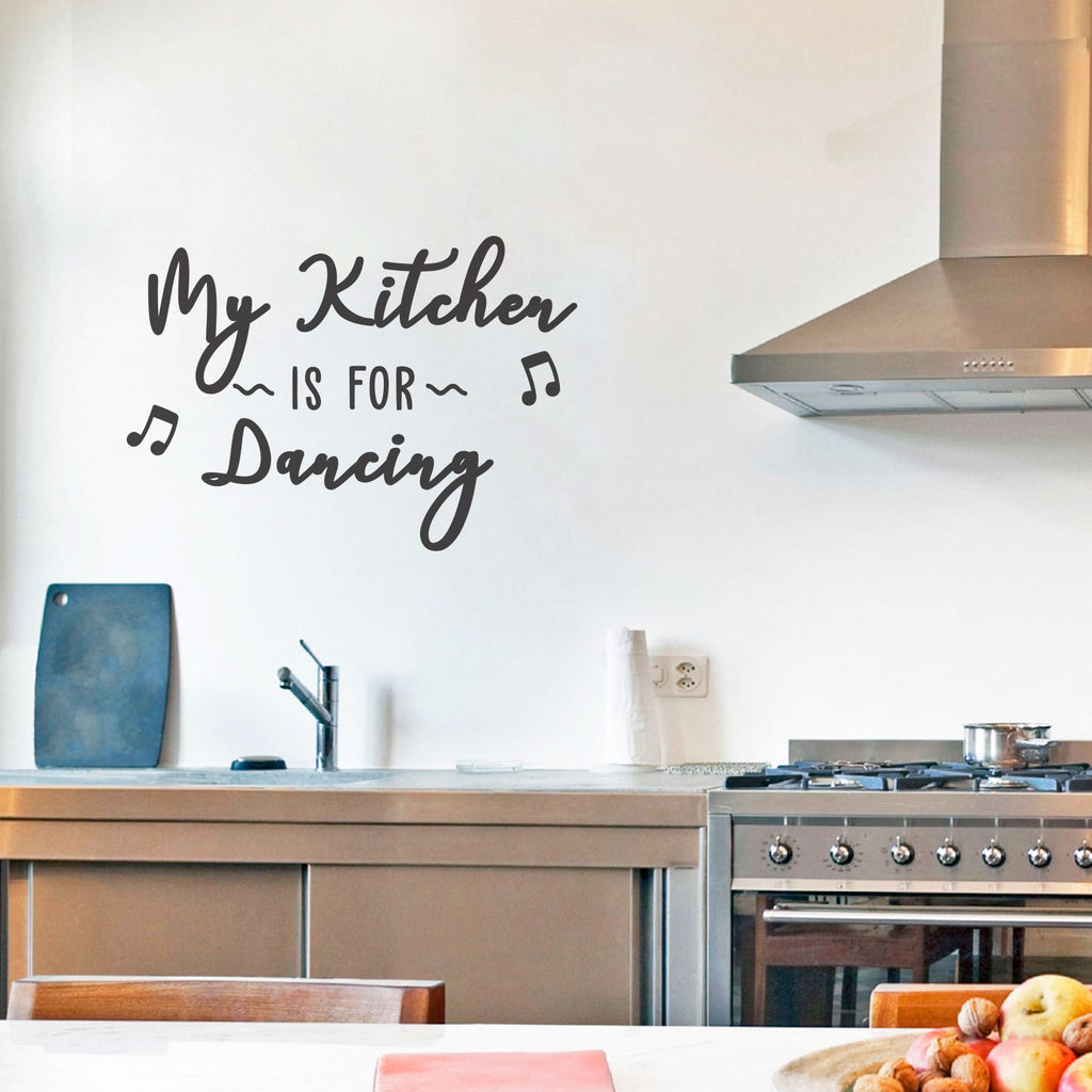 This "My Kitchen Is For Dancing" quote wall art decal is funny and the perfect touch for both indoor and outdoor decoration. It is a vinyl sticker that is easy to put onto almost any smooth surface and really brings a room together adding the perfect amount of decoration. This vinyl decal quote is perfect for people who like to dance to put in the kitchen of your home to bring a happy; positive vibe. Our modern quotes don't just brighten up the room; but brighten up the day. Using top of the line vinyl across all of our production allows us to be the leaders in quality and design.