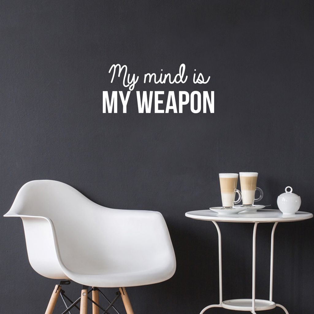This awesome motivational decal quote "My Mind Is My Weapon"; is the perfect touch for your home or work. Use it for your bedroom; home office; dorm room; kids bedroom or anywhere you want to bring some extra decoration. It's a vinyl sticker that is easy to put on any smooth and dry surface. Our modern designs don't just brighten up the room; but brighten up the day. Using top of the line vinyl across all of our production allows us to be the leaders in quality and design.