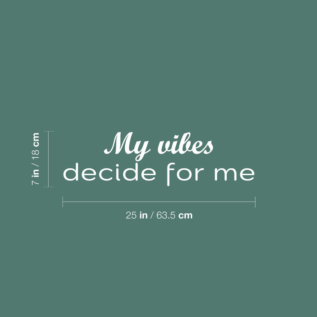 This awesome positive decal quote "My Vibes Decide For Me"; is the perfect touch for your home. Use it for your classroom; living room; office or anywhere you want to bring some extra inspiring decoration. It's a vinyl sticker that is easy to put on any smooth and dry surface. Our modern designs don't just brighten up the room; but brighten up the day. Using top of the line vinyl across all of our production allows us to be the leaders in quality and design.