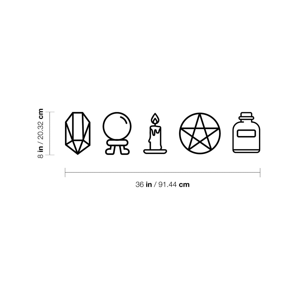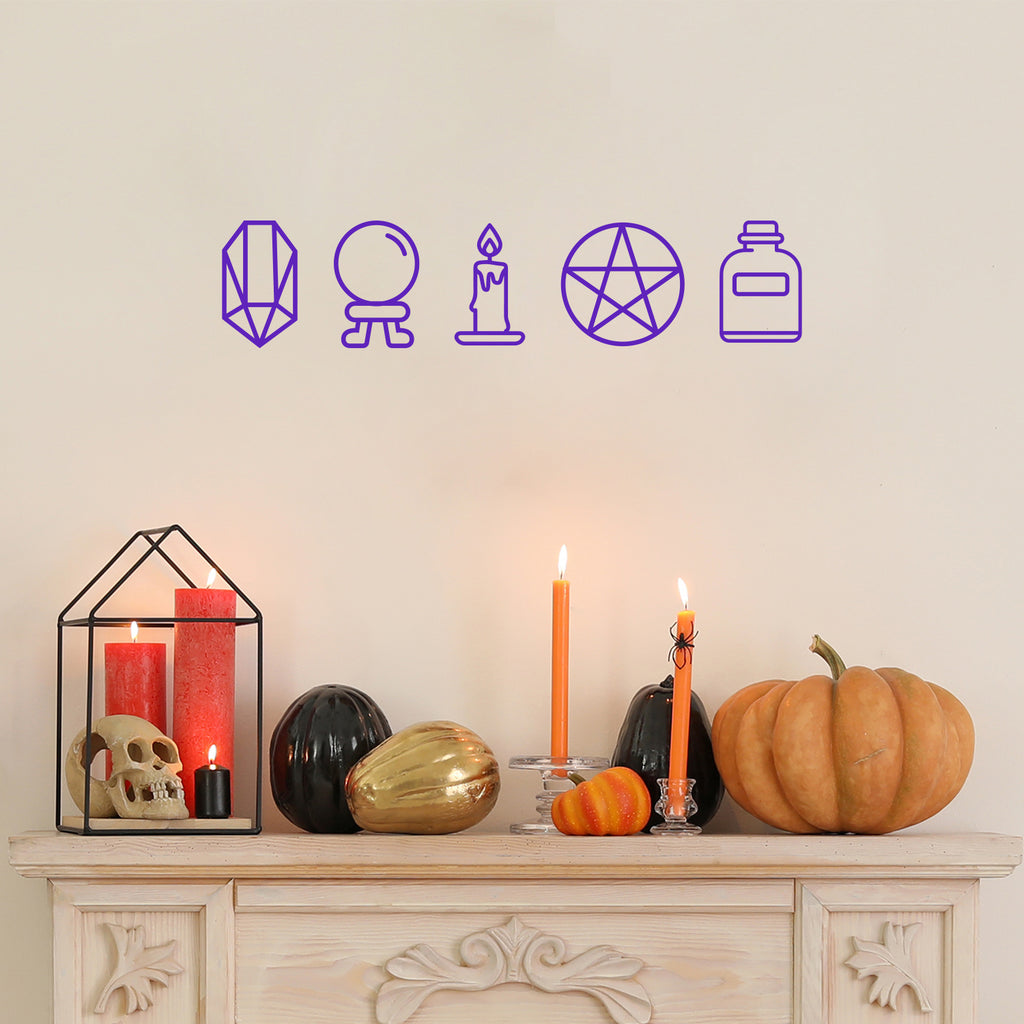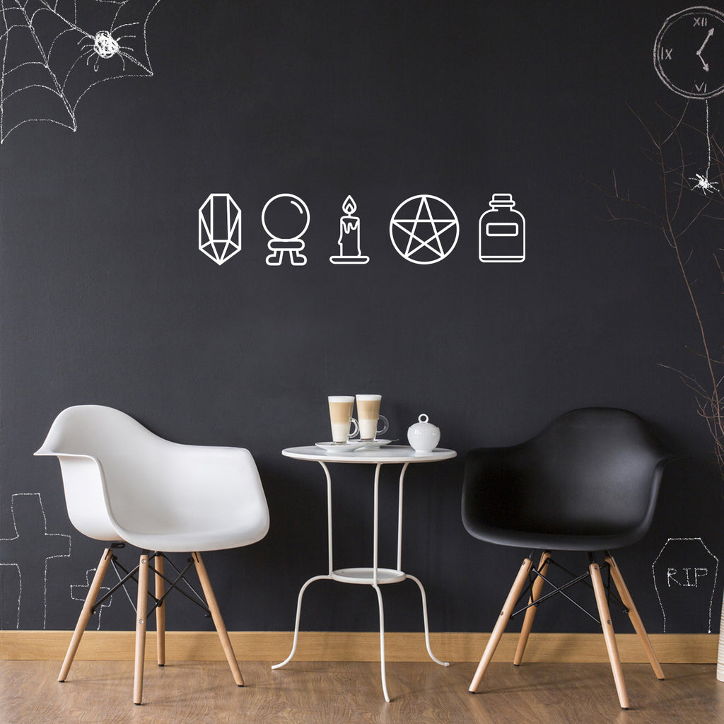 This fun spooky halloween season design decal "Mystic Objects"; is the perfect touch for your home or storefront. Use it for your entry door; windows; living room or anywhere you want to bring some extra cute decoration. It's a vinyl sticker that is easy to put on any smooth and dry surface. Our modern designs don't just brighten up the room; but brighten up the day. Using top of the line vinyl across all of our production allows us to be the leaders in quality and design.