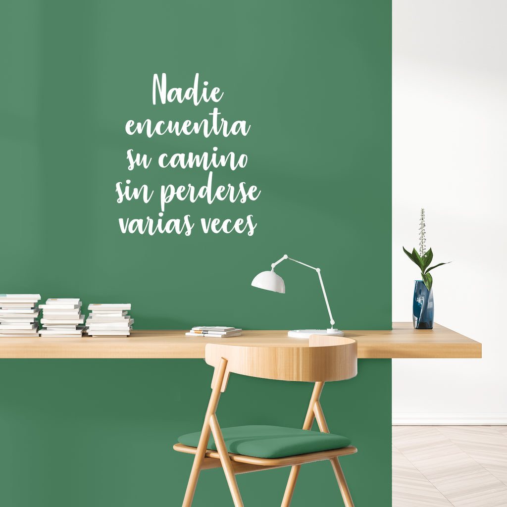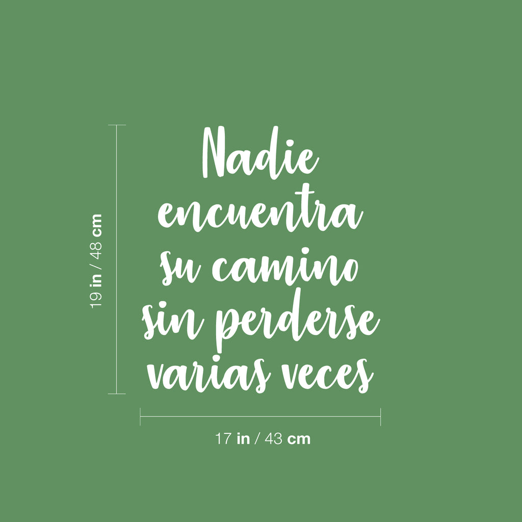 This awesome positive decal quote "Nadie Encuentra Su Camino Sin Perderse Varias Veces / Nobody Finds His Way Without Getting Lost Several Times" is the perfect touch for your home or office. Use it for your bedroom; living room; classroom or anywhere you want to bring some extra cute decoration. It's a vinyl sticker that is easy to put on any smooth and dry surface. Our modern designs don't just brighten up the room; but brighten up the day. Using top of the line vinyl across all of our production allows us to be the leaders in quality and design.